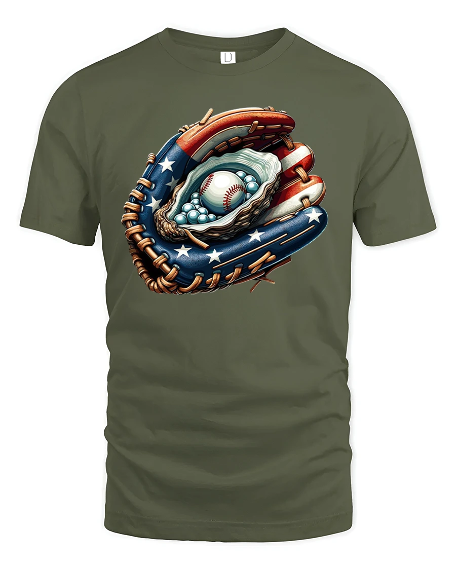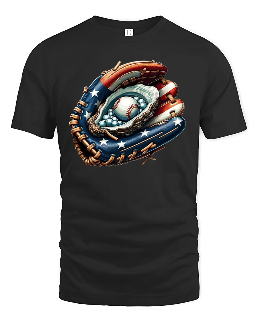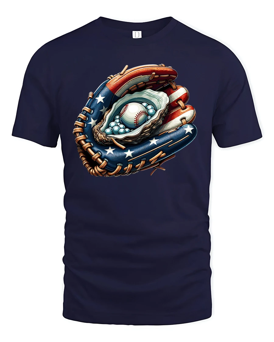 Featuring a beautifully detailed baseball glove patterned with the U.S. flag and holding a baseball like a treasured pearl, this design captures the heart of every true fan.