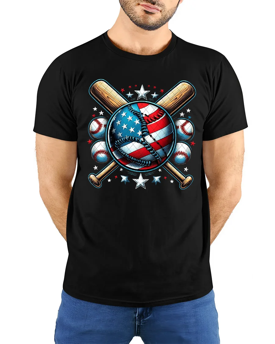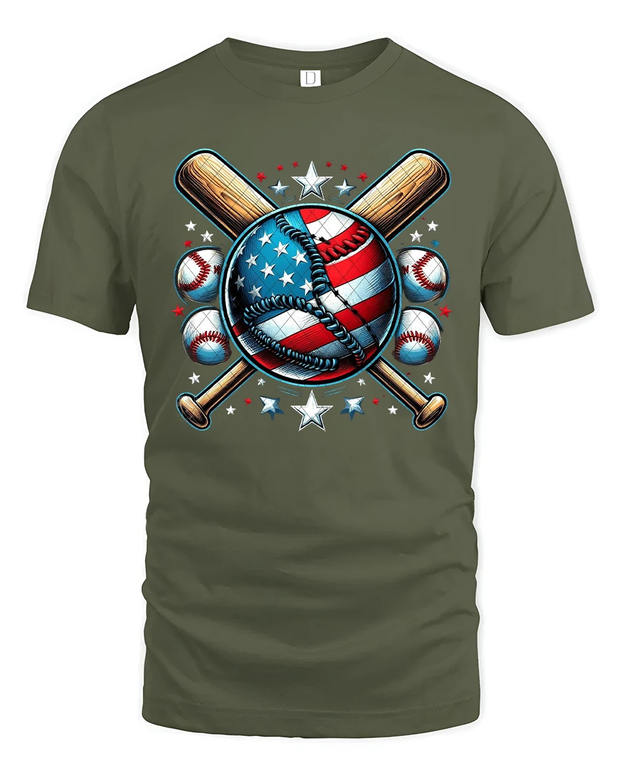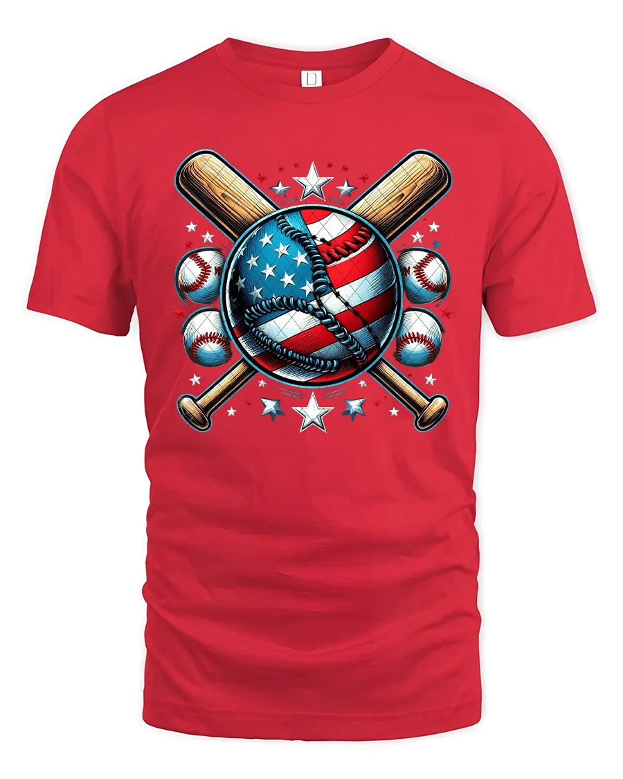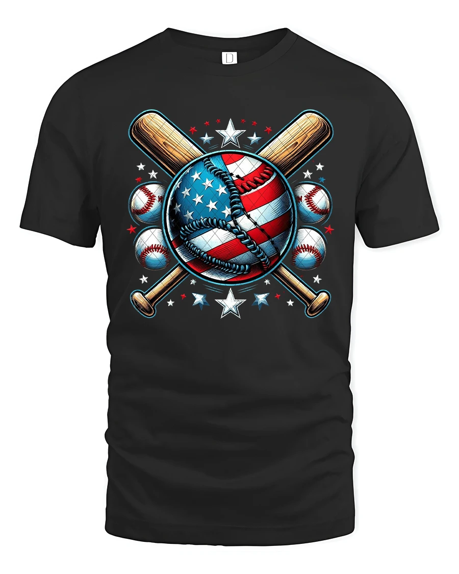 Show off your love for the game and your country with this American Baseball T-Shirt, featuring a bold stars-and-stripes baseball surrounded by crossed bats and patriotic stars. This design perfectly blends the spirit of America’s favorite pastime with national pride, making it a must-have for players, fans, and sports enthusiasts alike.