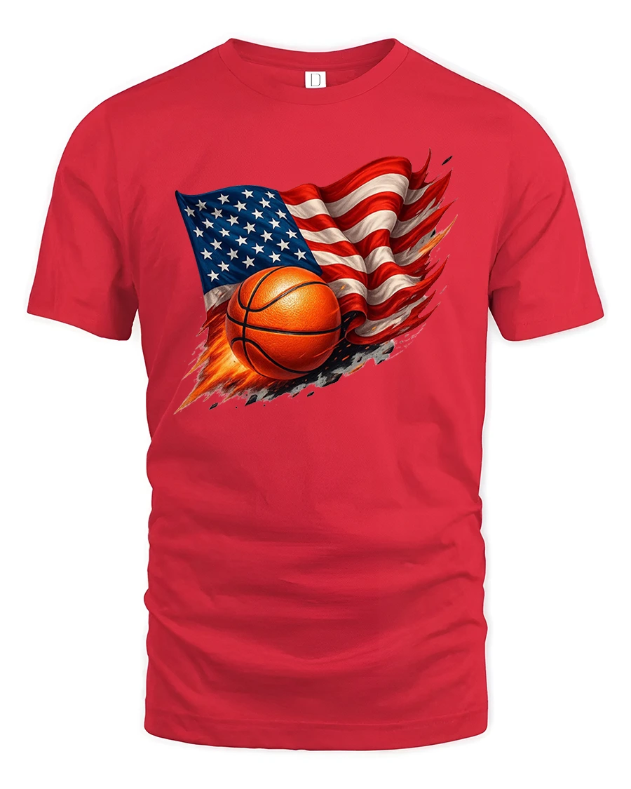 Show your USA pride in style with the American Flag Basketball Fire USA Sports Pride T-Shirt — the ultimate combination of patriotism and basketball passion.