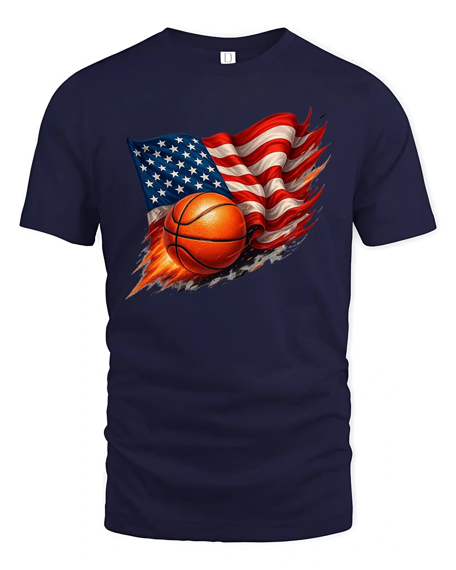 Featuring a flaming basketball soaring in front of the waving U.S. flag, this powerful design captures the energy, pride, and passion of true American athletes and fans.