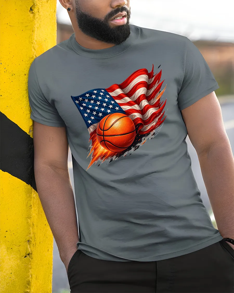 Made from soft, breathable cotton, this patriotic basketball t-shirt offers lasting comfort and a modern fit.