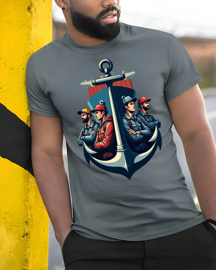 Stand tall with strength and unity in the Anchor Crew Nautical Sailor Graphic T-Shirt. This striking design features a bold anchor with a determined sailor crew standing in solidarity, representing brotherhood, courage, and resilience. Perfect for those who love maritime themes, sailor culture, or ocean-inspired fashion, this tee combines powerful symbolism with modern style.