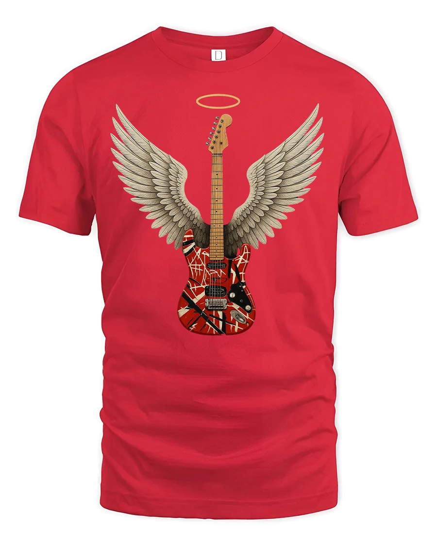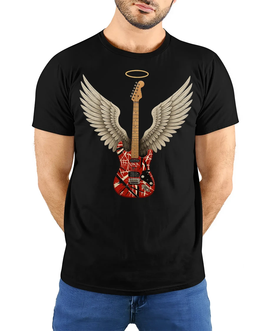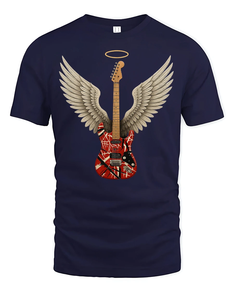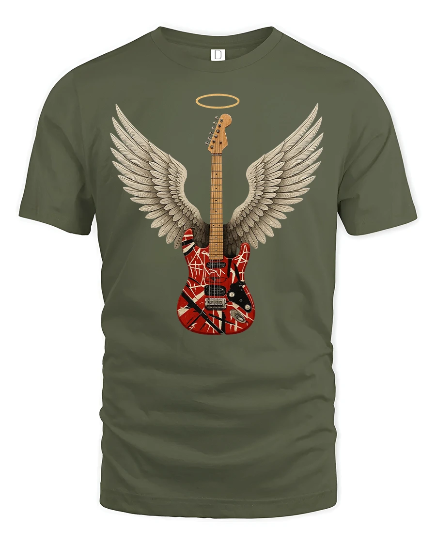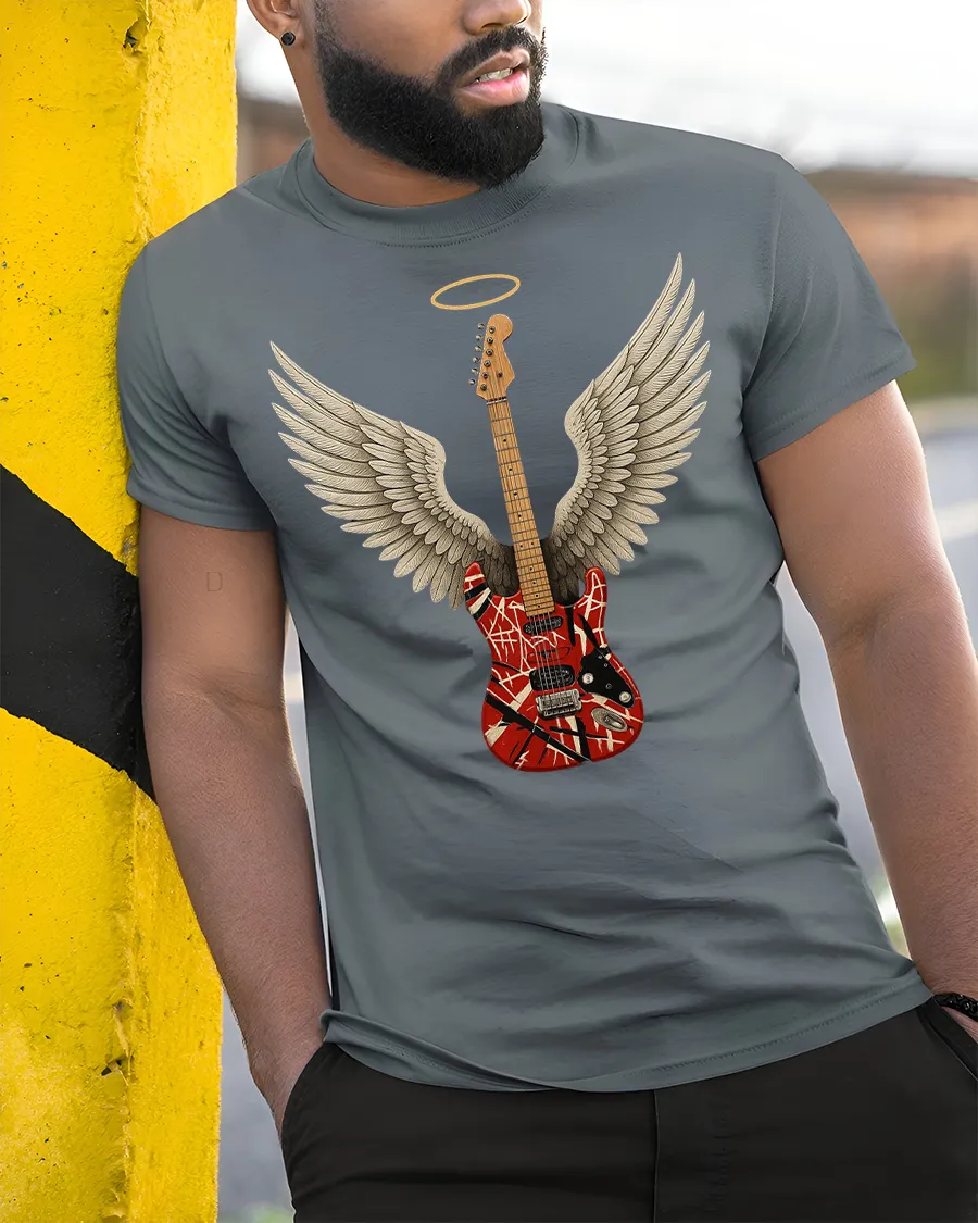 This Angel Wing Guitar Graphic Tee for Music Lovers Cool Rock Tshirt brings a bold fusion of art and attitude to your wardrobe. Featuring a beautifully detailed guitar with angel wings and a glowing halo, this design symbolizes the spirit of music and the passion behind every chord. The artistic graphic stands out instantly, making it a perfect choice for fans of rock, guitarists or anyone who loves expressive music-inspired apparel.