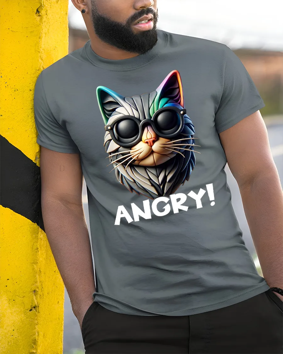 Angry Cat with Sunglasses Funny Graphic T-Shirt is the perfect way to show off your sense of humor and unique style. Featuring a bold cartoon-style cat wearing oversized shades and a fierce “ANGRY!” statement, this tee combines attitude with fun in a design that instantly grabs attention. Whether you’re a cat lover or just enjoy funny graphic shirts, this one is sure to be a favorite.