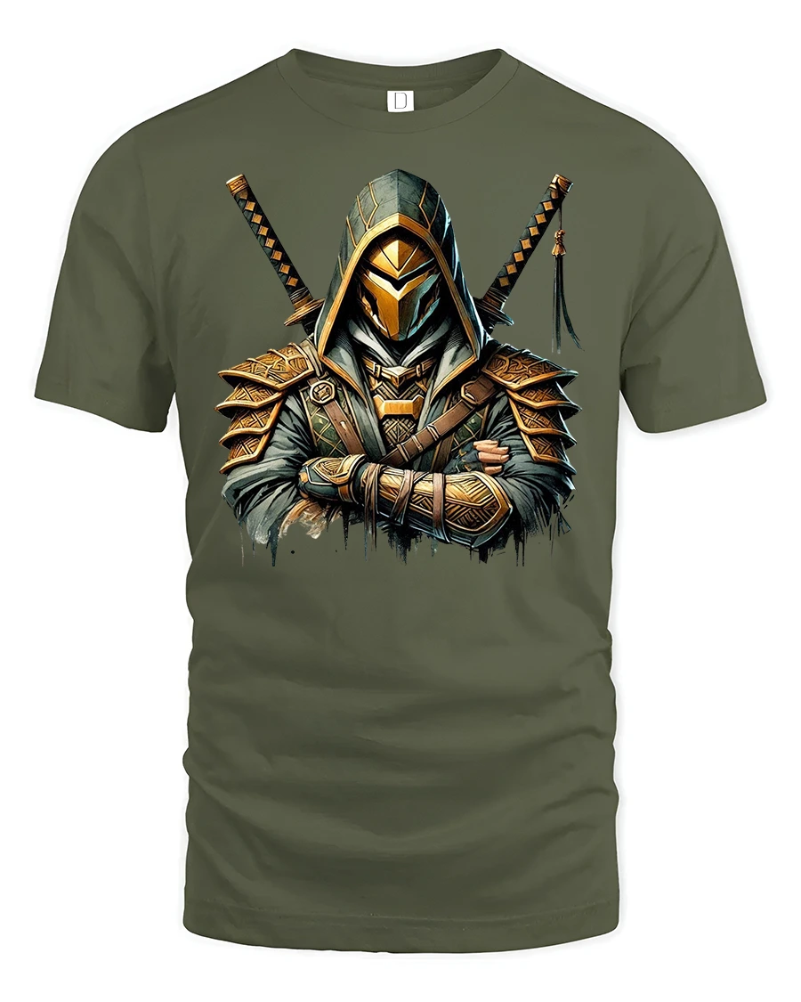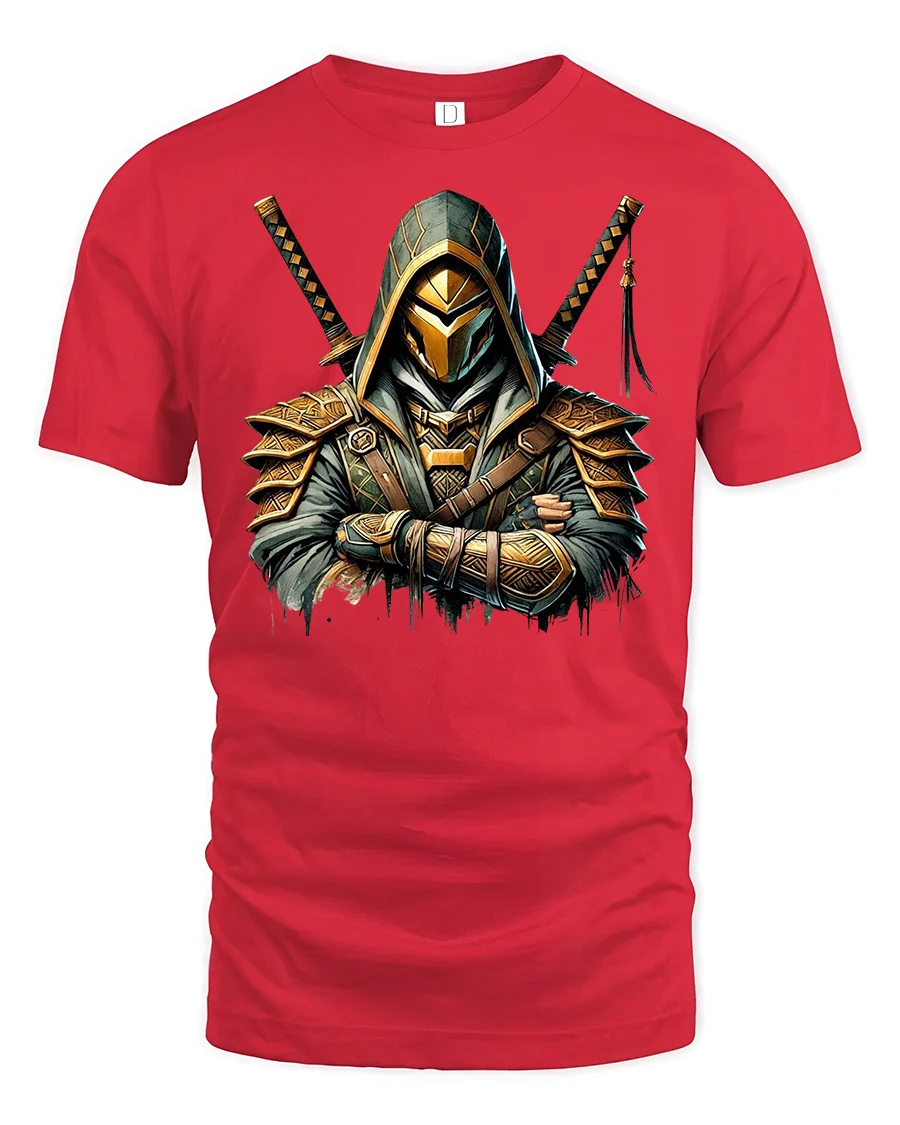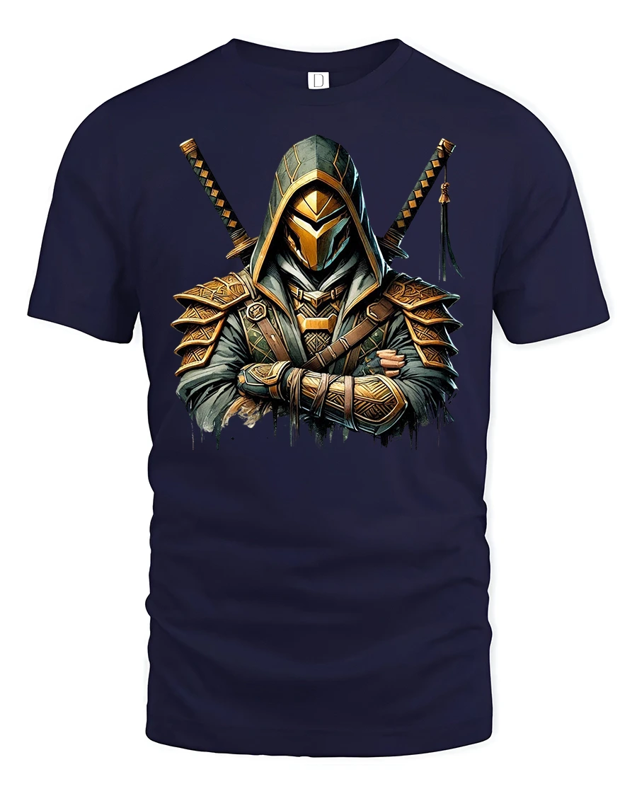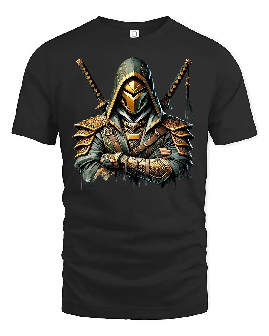 Unleash your inner warrior with the Assassin Samurai Warrior Graphic Print T-Shirt. Featuring a bold and detailed design of a hooded assassin armed with dual katana swords, this tee blends Japanese warrior tradition with a modern fantasy vibe. The sharp lines, golden armor details, and mysterious aura make it a standout piece for fans of anime, martial arts, and Japanese-inspired art.