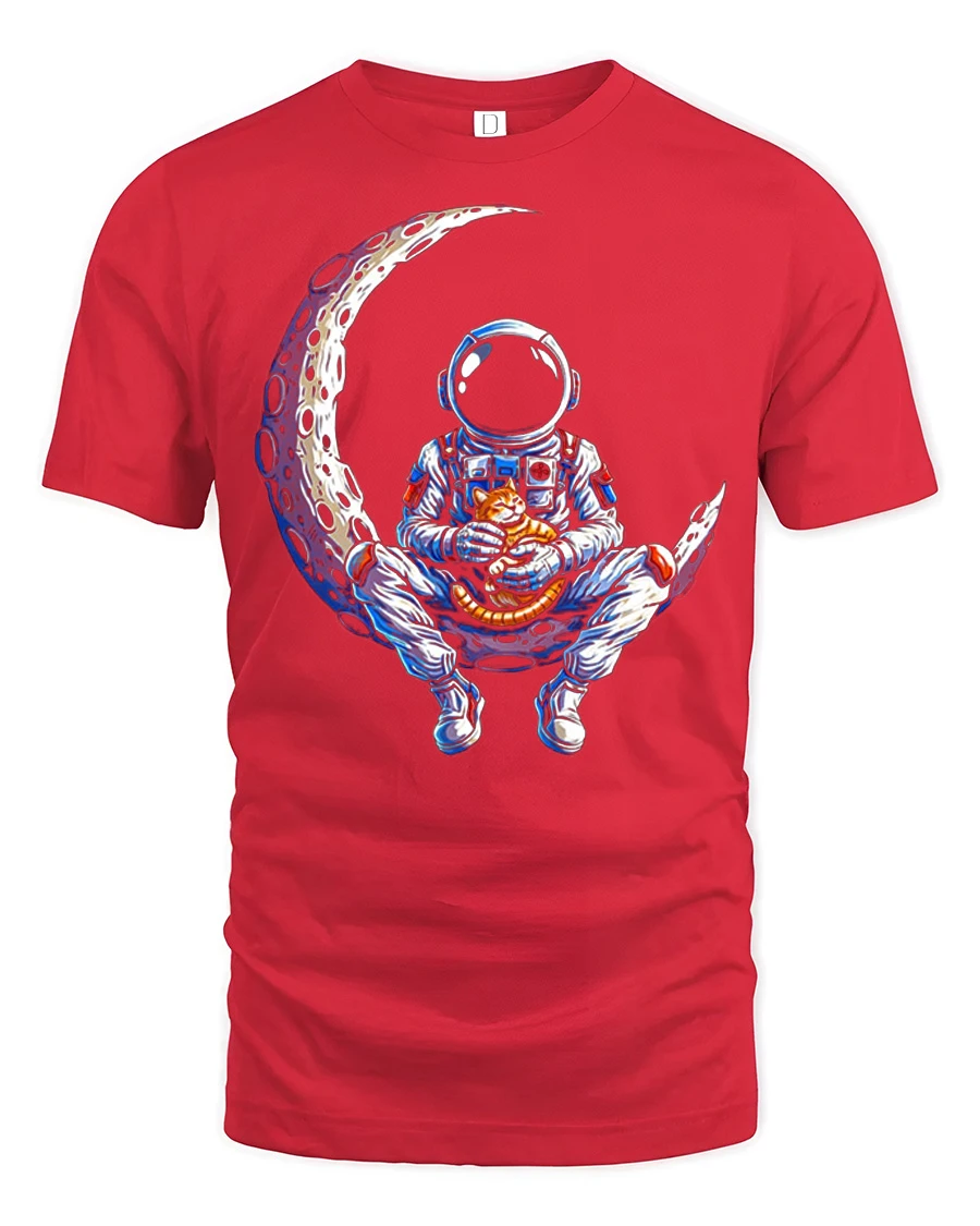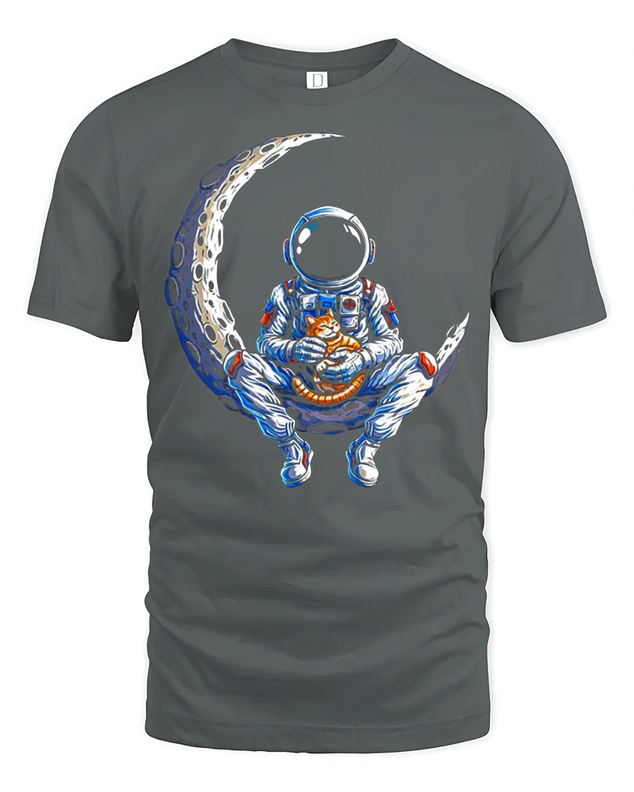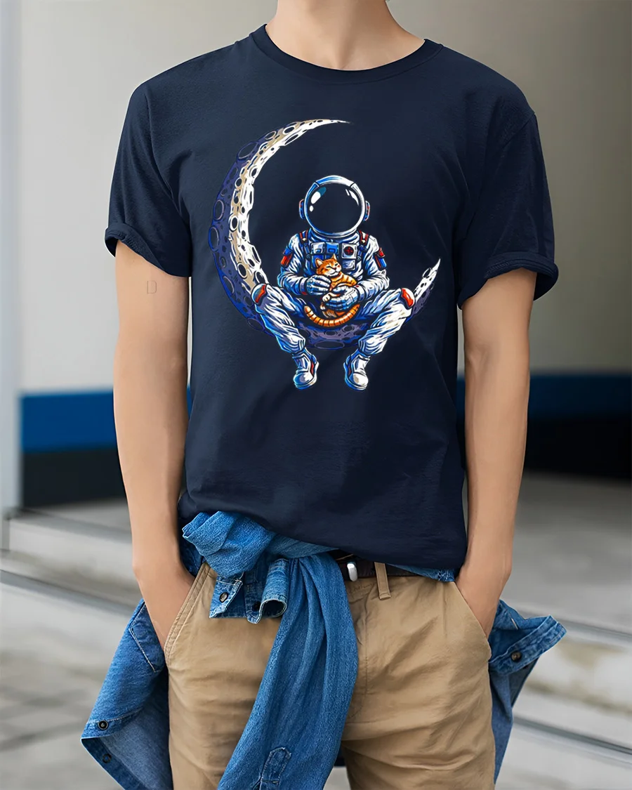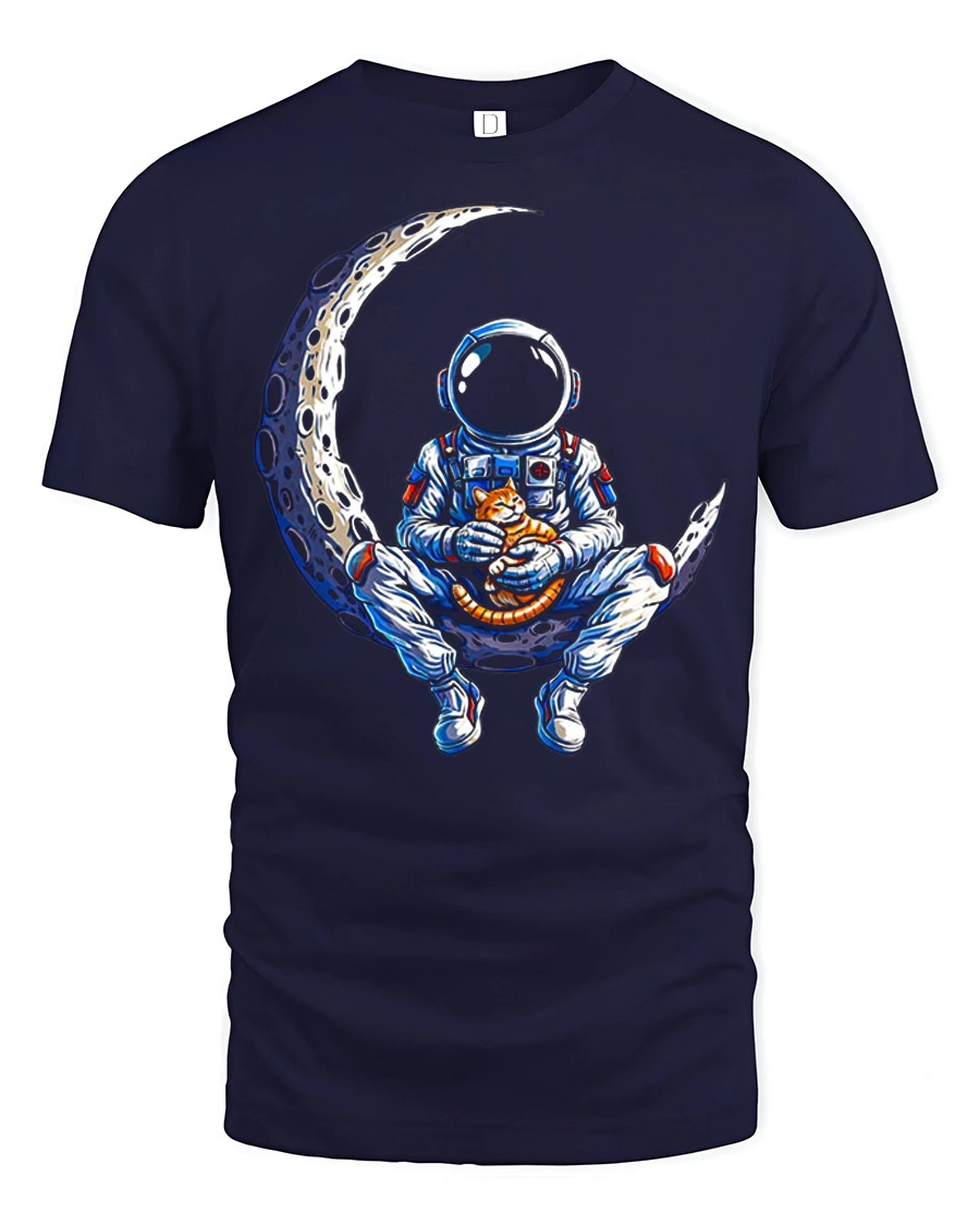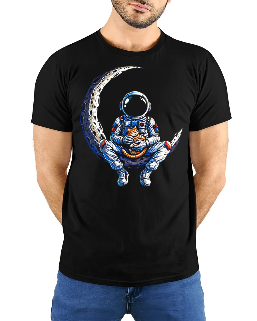 Astronaut Cat On Moon Graphic T Shirt Cute Space Adventure