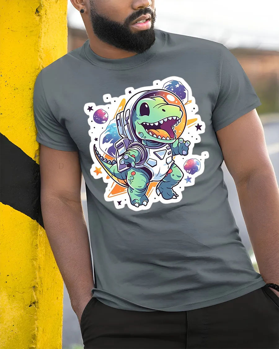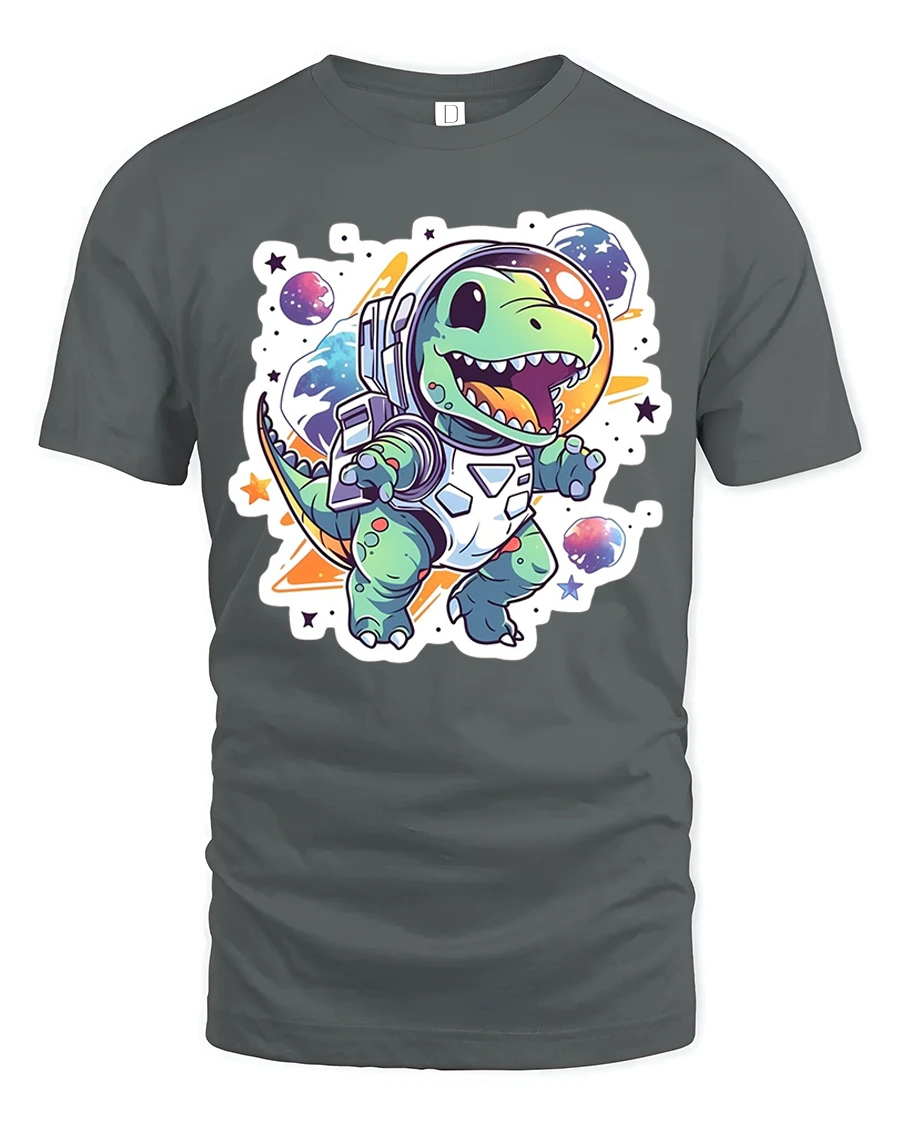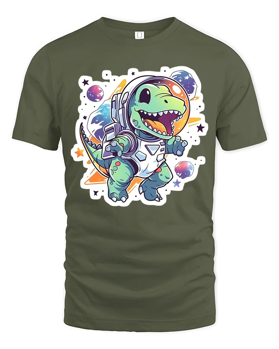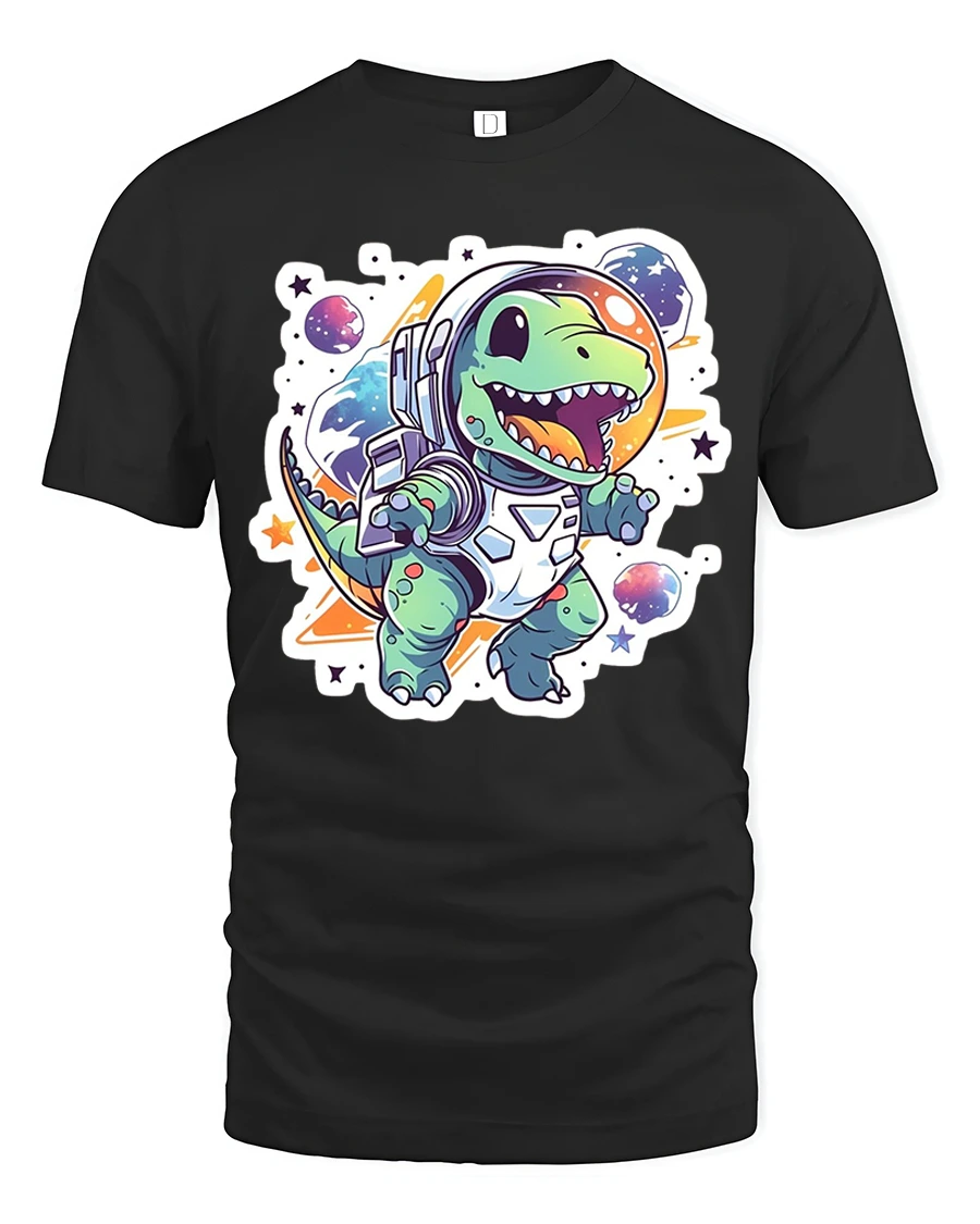 Astronaut Dino Adventure Kids Tee – Cute Space Dinosaur Tshirt brings exciting cosmic fun to your child’s wardrobe. Featuring an adorable dinosaur in a full astronaut suit floating among planets and stars, this playful design captures imagination instantly. The bold colors, charming art style, and cheerful expression make it a top pick for space lovers and dino fans alike.
