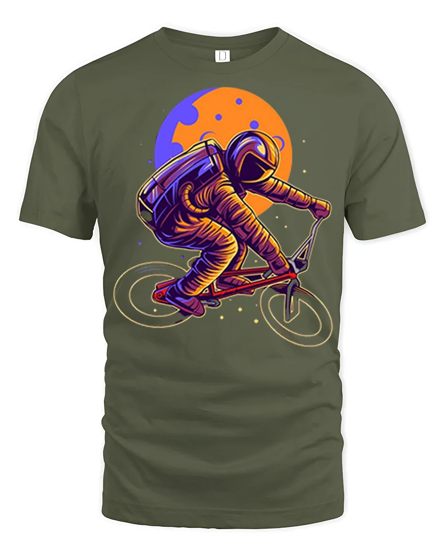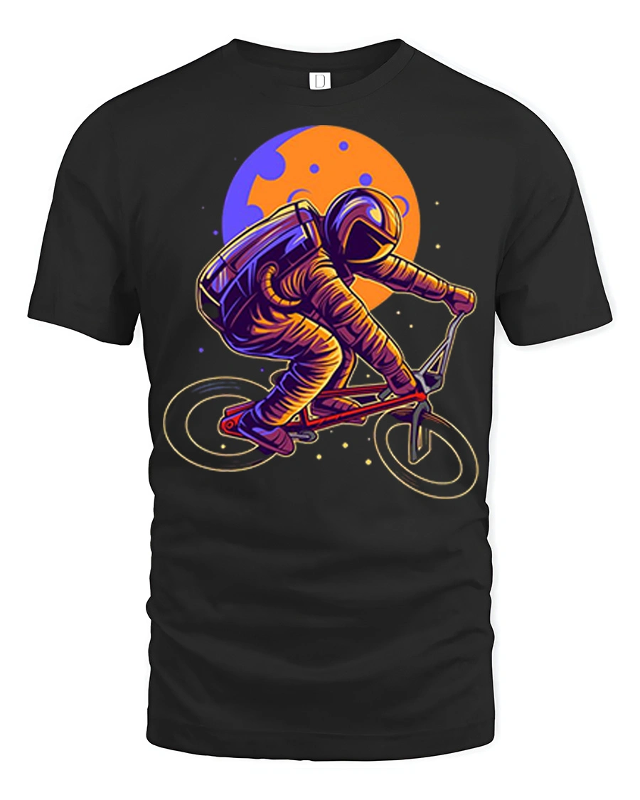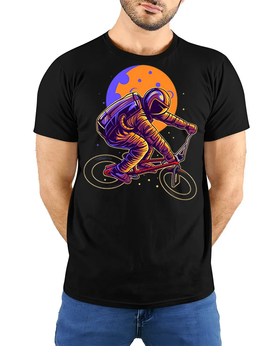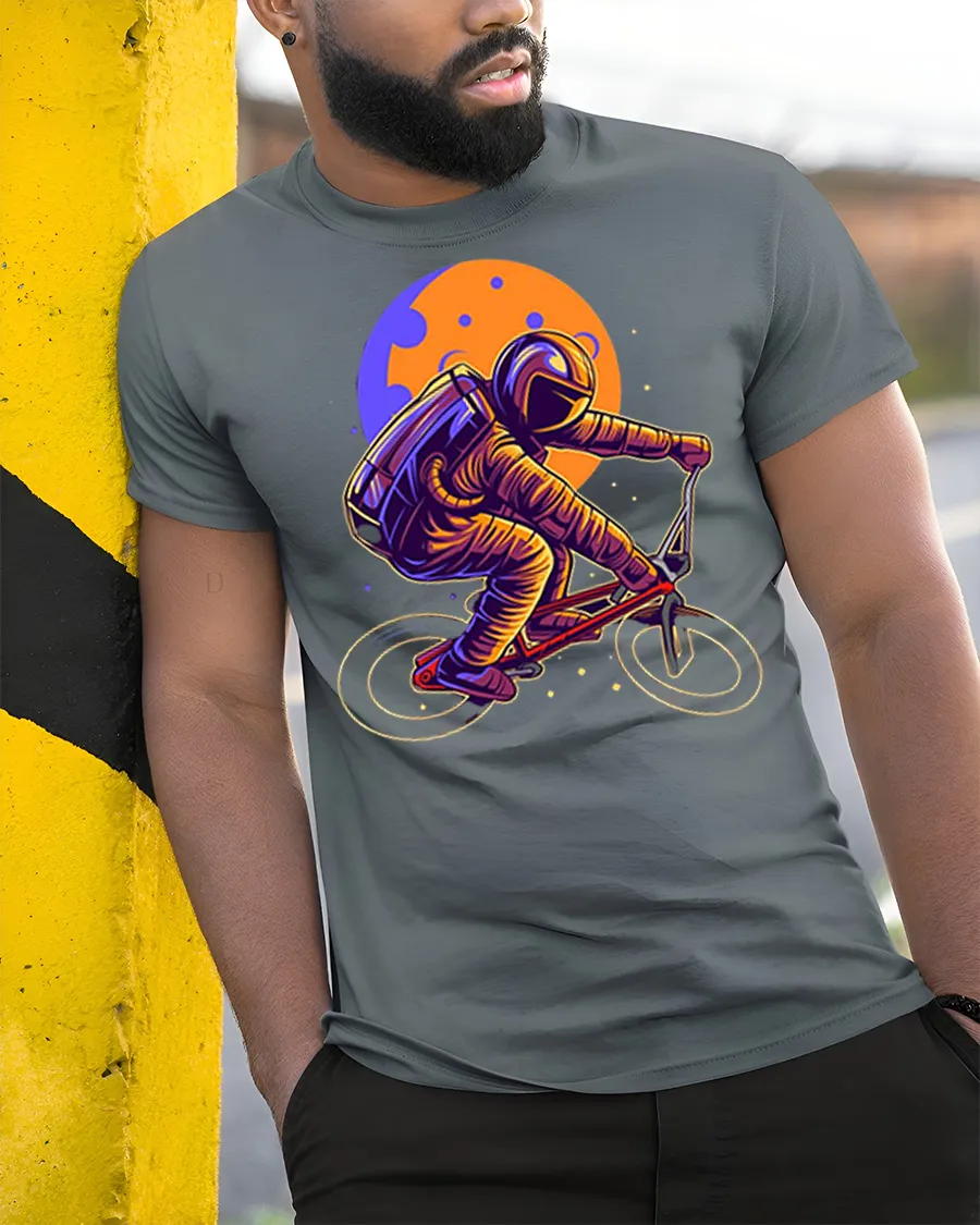 Astronaut Riding BMX Bike Space Retro Graphic T Shirt Tee