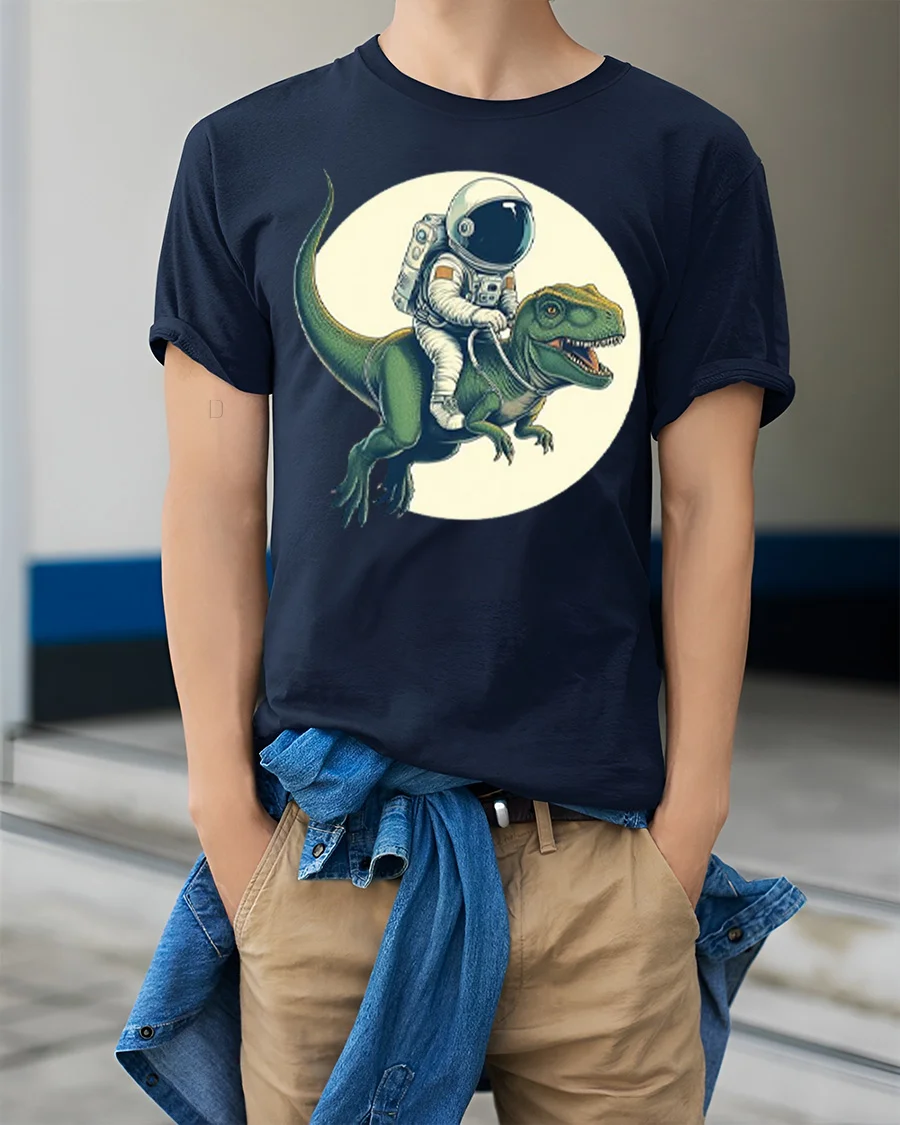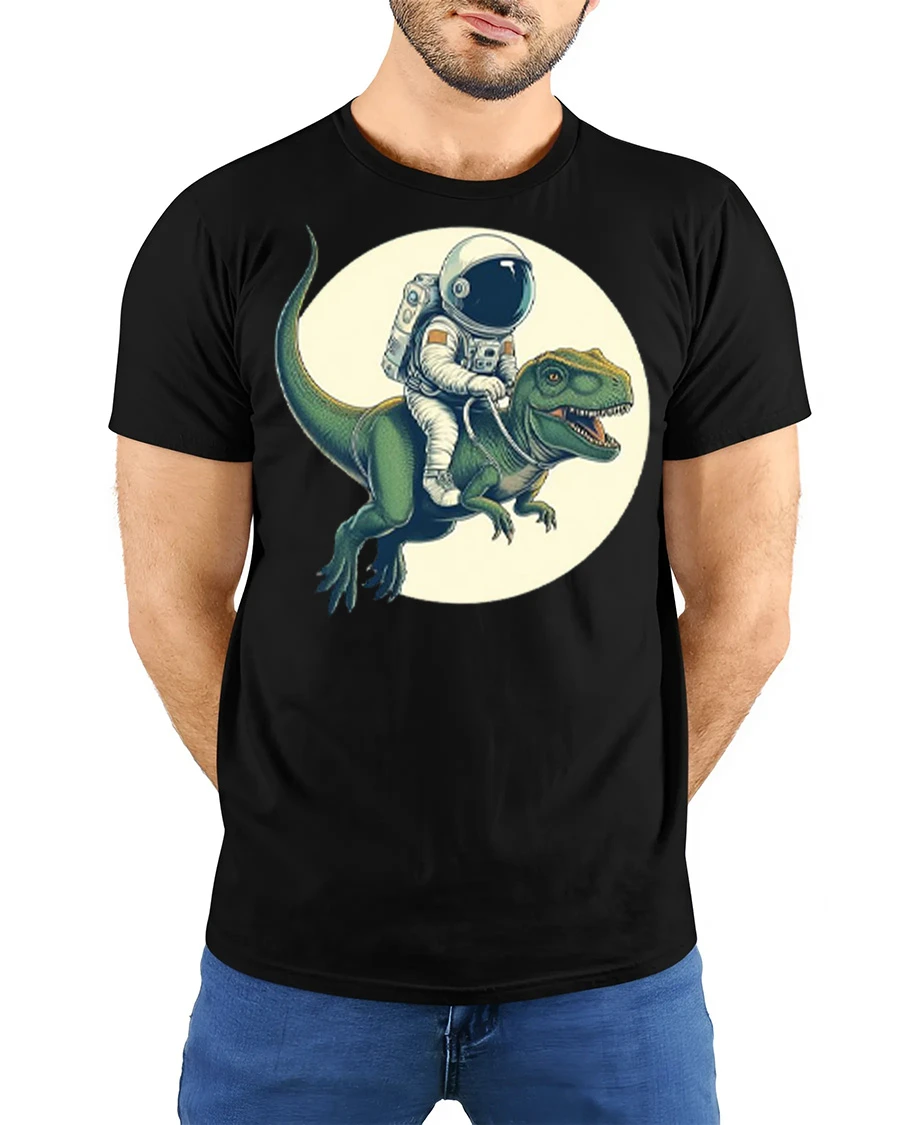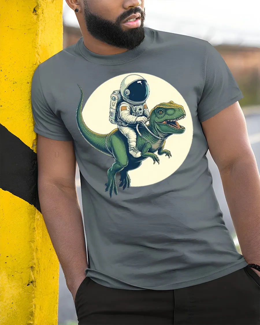 Made with soft and comfortable fabric, this t shirt provides a lightweight and breathable feel that is perfect for everyday wear and casual outings. The funny astronaut and dinosaur graphic design pairs easily with jeans, shorts, or casual outfits and adds a cool and playful vibe to your wardrobe. This graphic tee is a great addition to any graphic t shirt collection and a fun way to show your love for space themes, dinosaurs, and creative graphic designs.