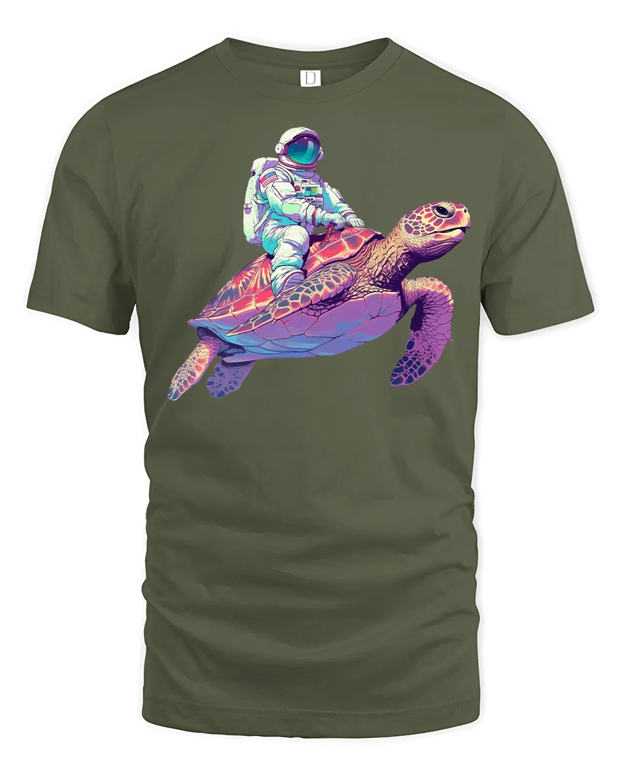 Blast off into style with the Astronaut Riding Turtle Cosmic Adventure T-Shirt. This unique design features a bold astronaut cruising through the cosmos on the back of a majestic sea turtle, blending space exploration with ocean wonder. It’s a surreal and eye-catching print that combines humor, creativity, and futuristic vibes in one unforgettable tee.