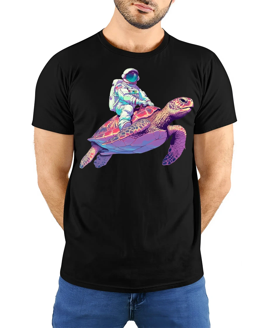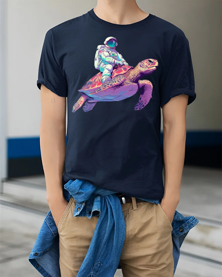 Crafted with soft, breathable fabric, this printed t-shirt offers comfort for all-day wear. Its vibrant colors and detailed artwork ensure the design stands out no matter where you go. Pair it with jeans, shorts, or layer it under a jacket for a stylish casual look. Add this one-of-a-kind astronaut turtle tee to your collection and let your imagination soar beyond the stars.