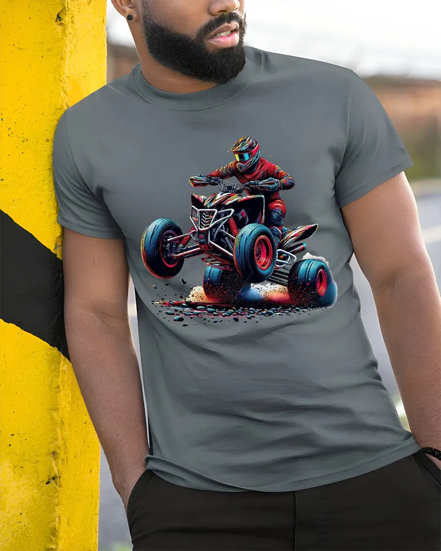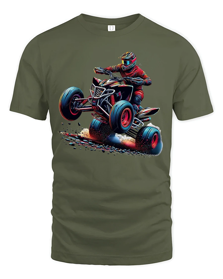 ATV Quad Bike Racing Art Graphic T Shirt captures the thrill of speed adrenaline and off road action in one powerful design.