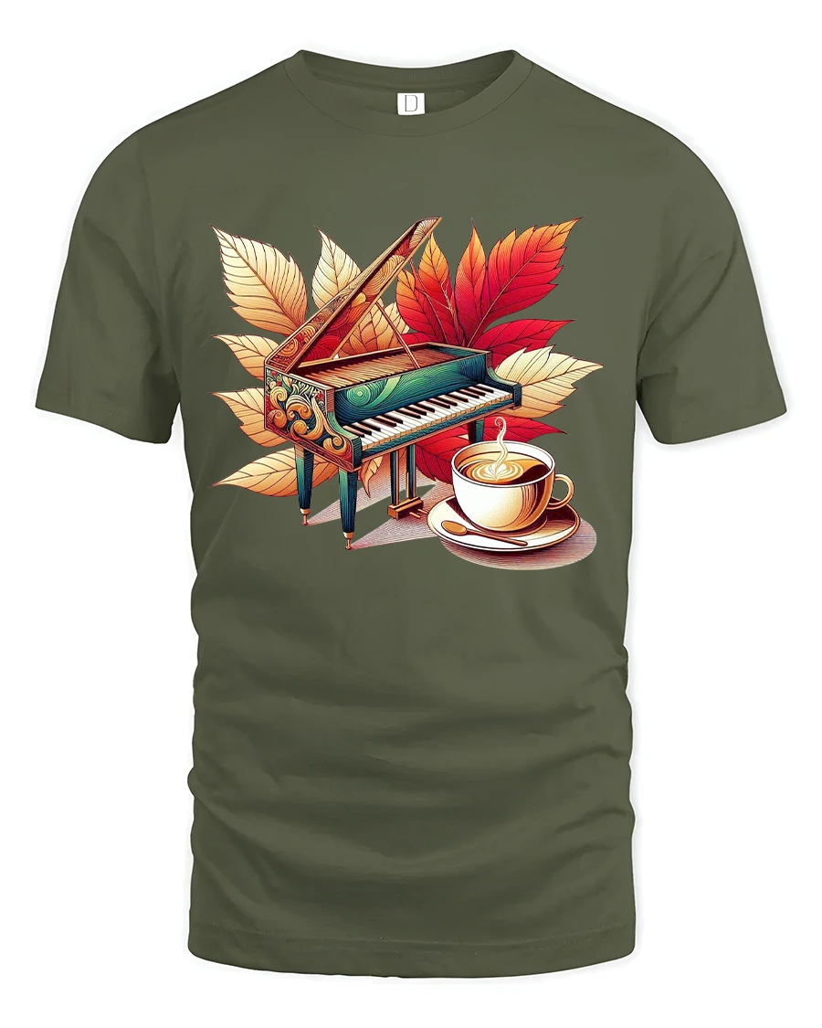 The Autumn Piano And Coffee Art T Shirt Cozy Music Lover Style is a perfect expression of artistic passion seasonal warmth and love for music and coffee.