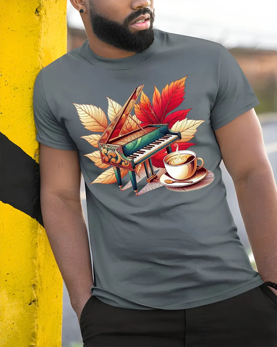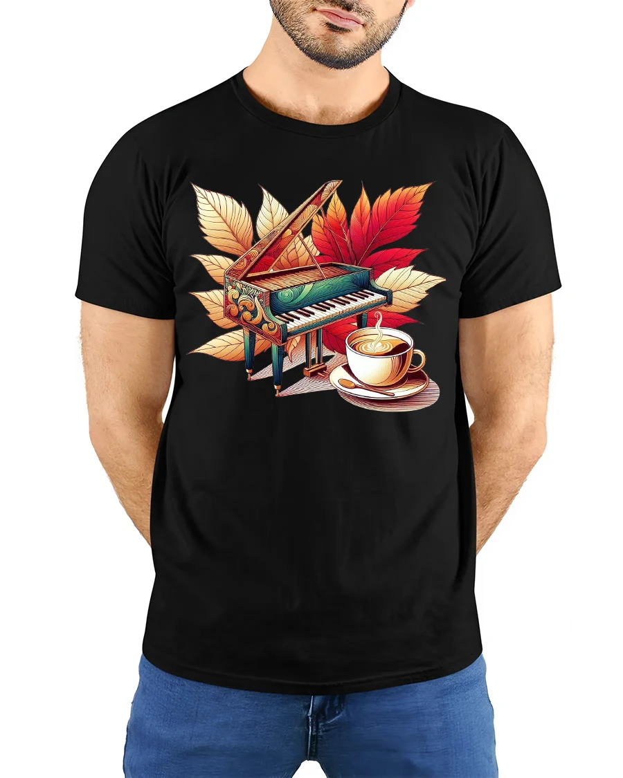 The Autumn Piano And Coffee Art T Shirt Cozy Music Lover Style brings together music warmth and artistic elegance in one beautiful design.