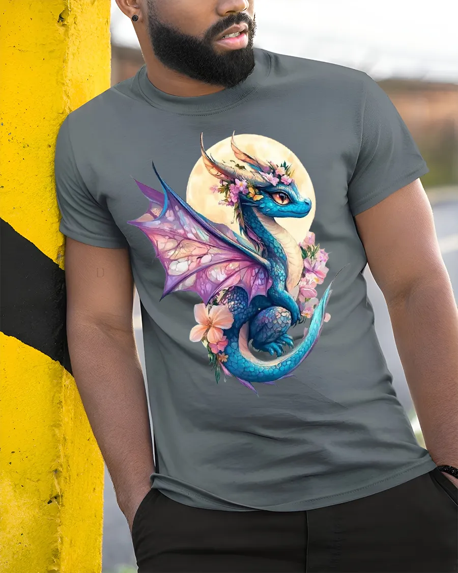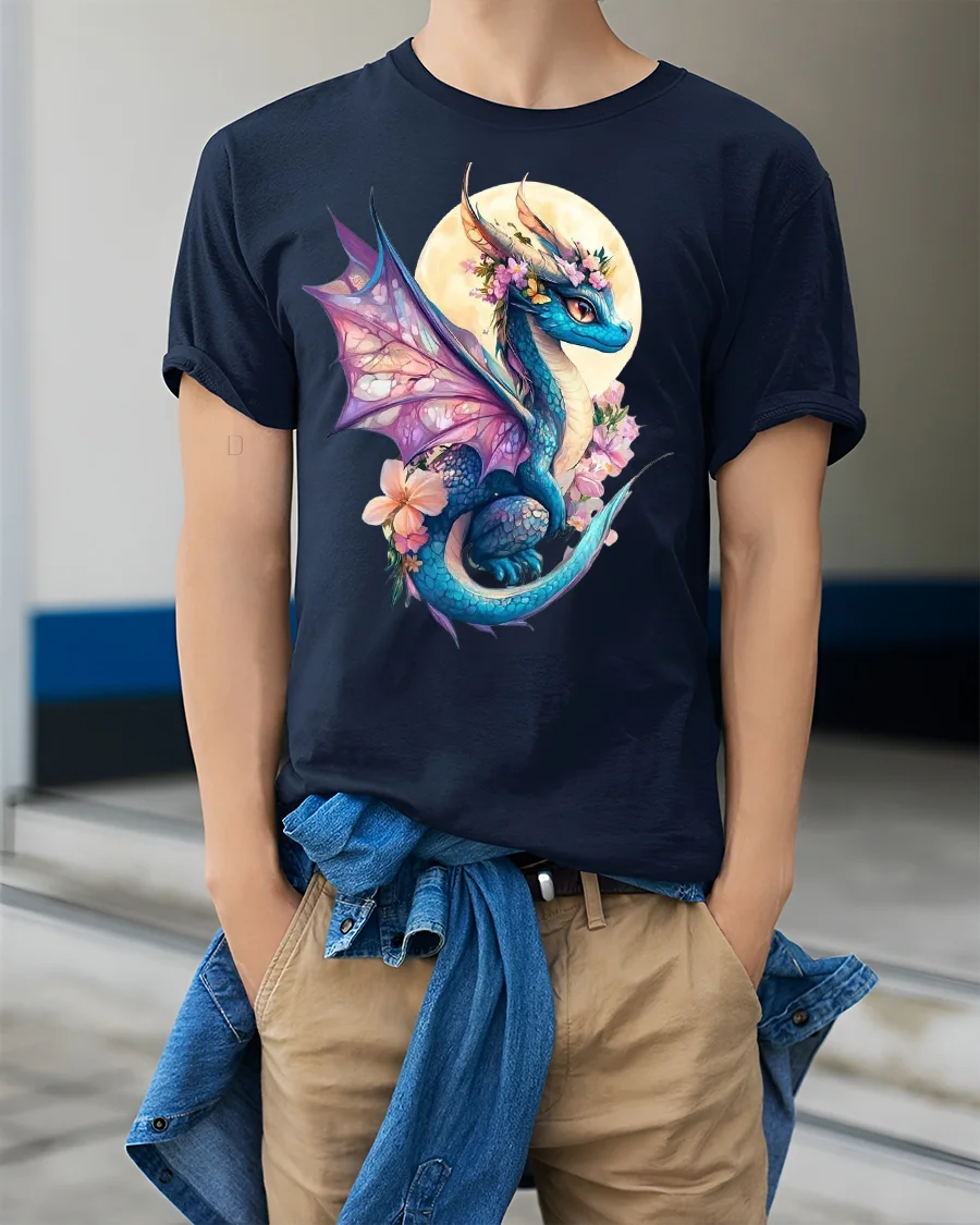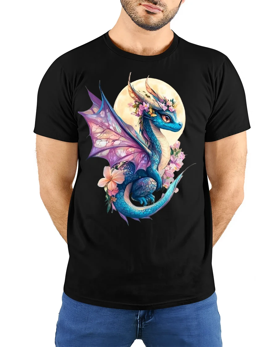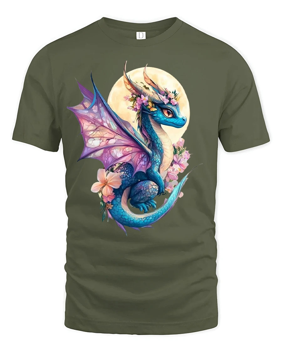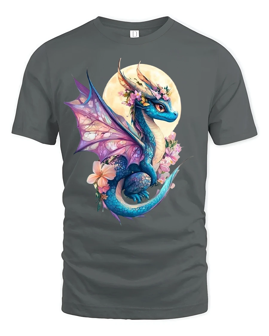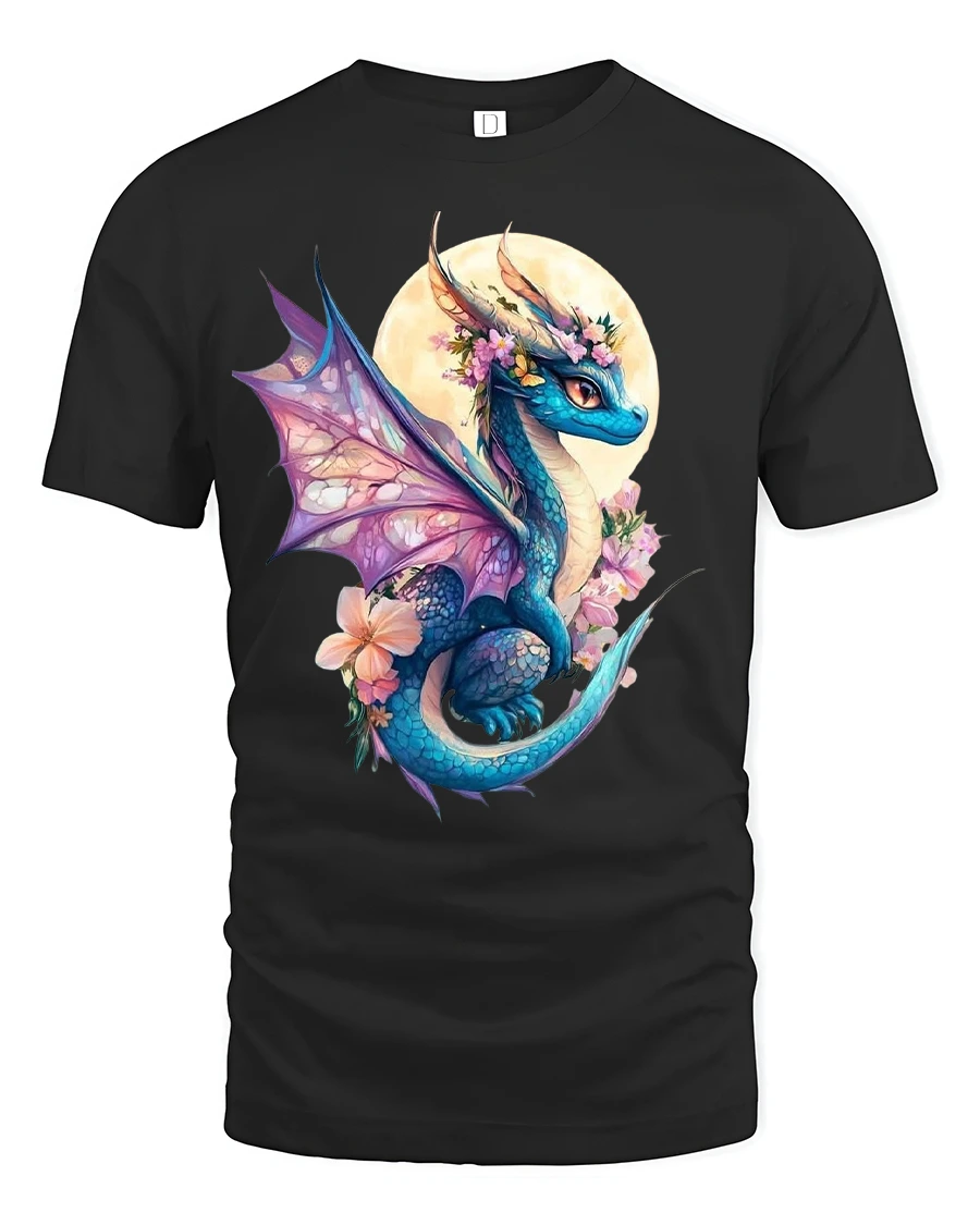 Beautiful Blue Dragon with Flowers Fantasy T-Shirt is the perfect blend of elegance, fantasy, and art.