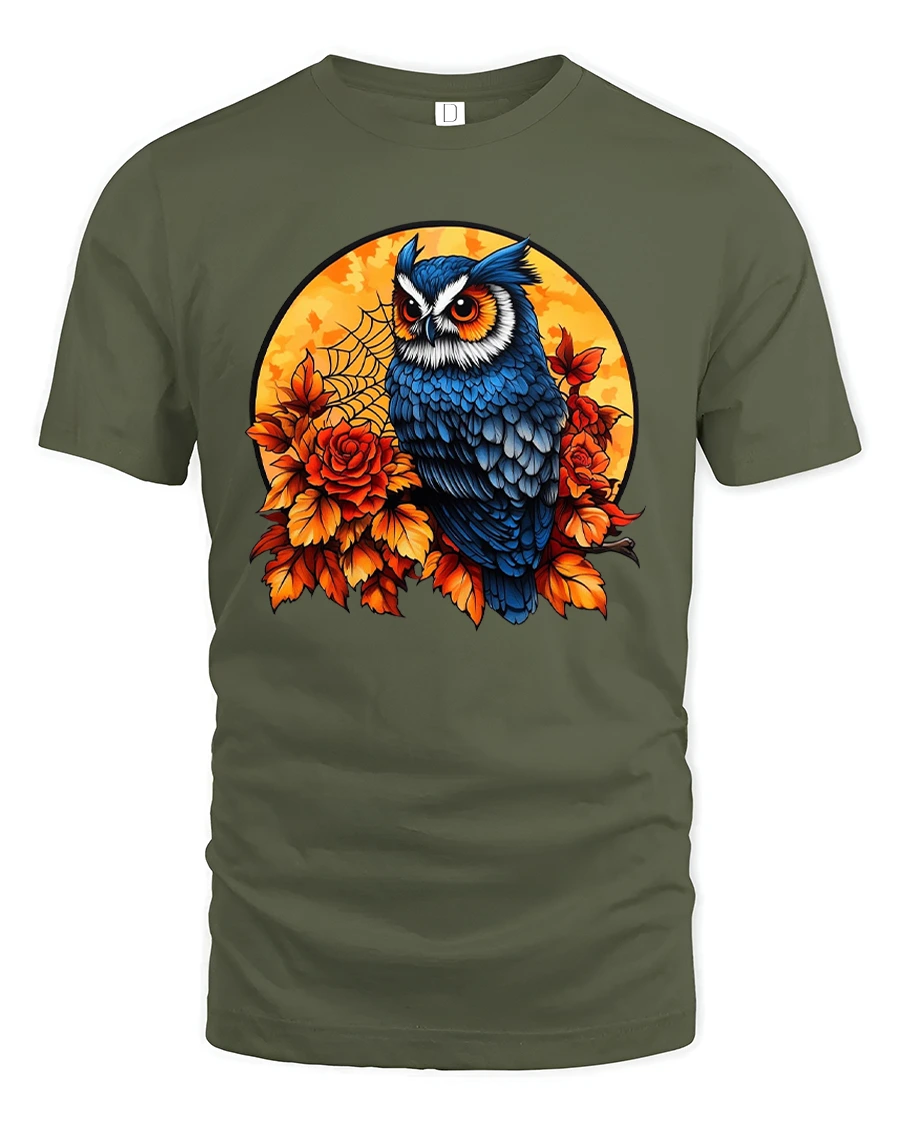 Show your wild and mysterious side with the Blue Owl T-Shirt Autumn Leaves Moonlight Graphic Tee. It’s more than just a t-shirt—it’s a statement of elegance and confidence that blends art, nature, and autumn spirit beautifully.