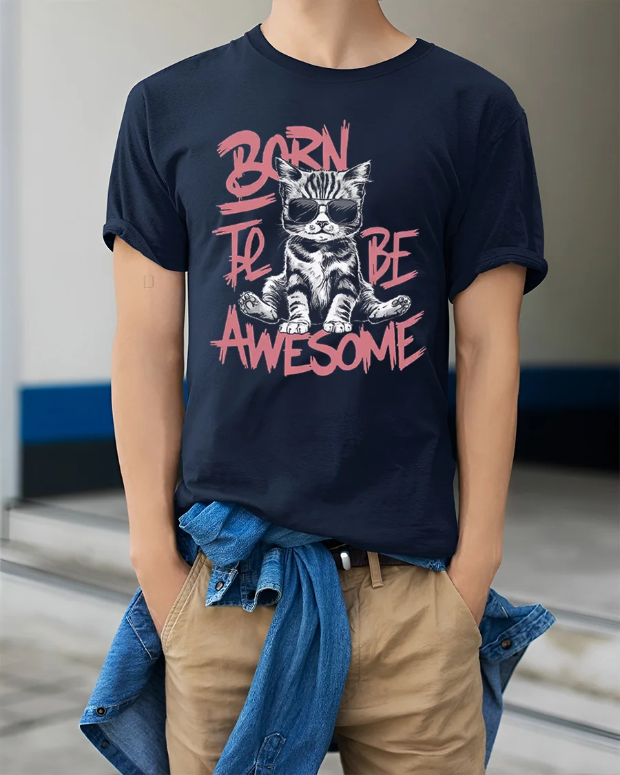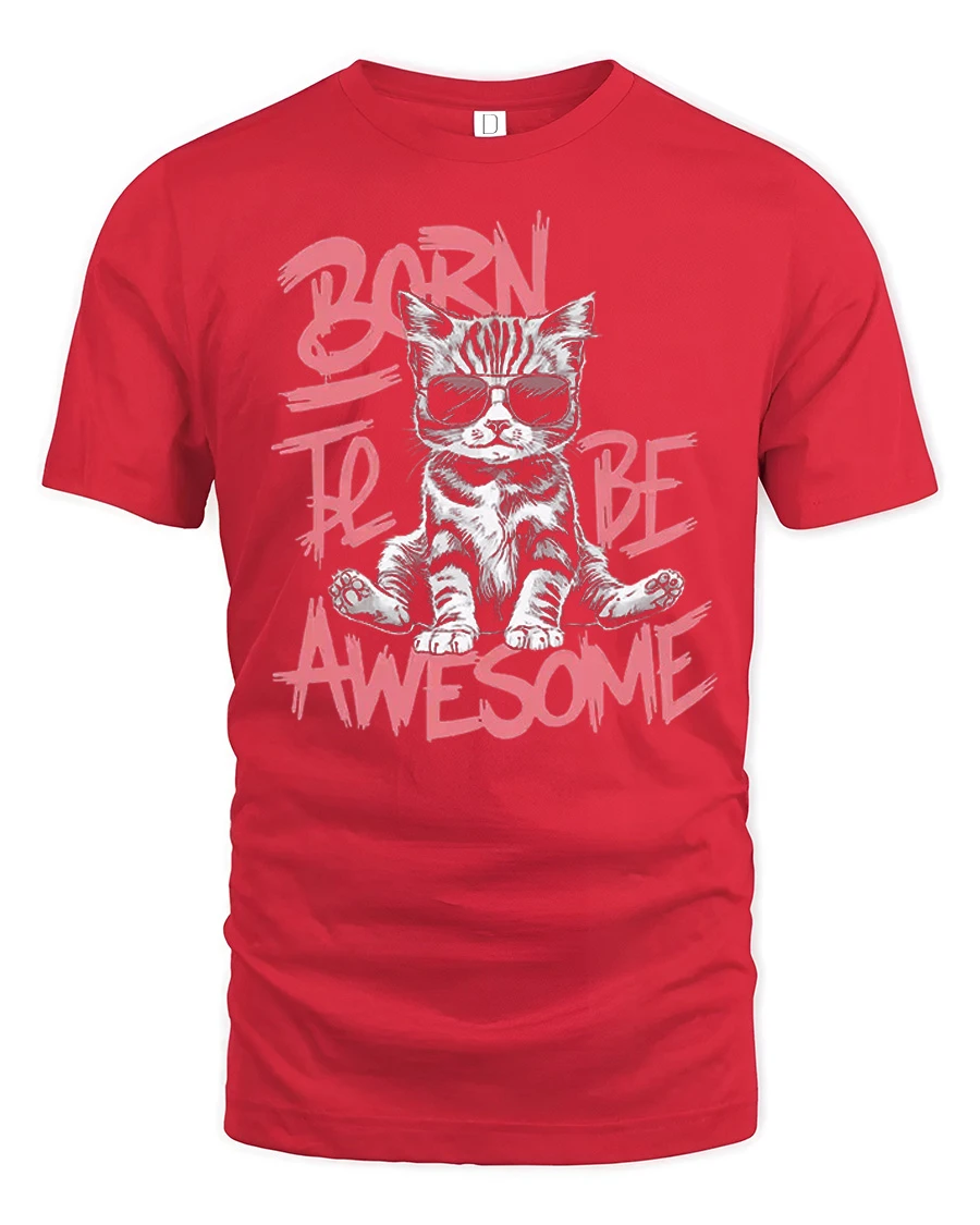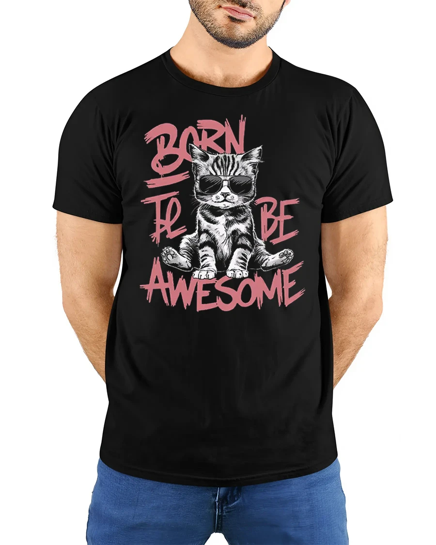 Born To Be Awesome Cool Cat Graphic T Shirt Funny Kitty Style