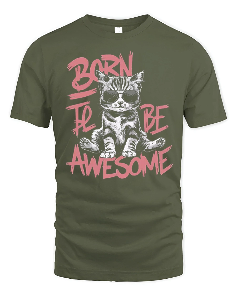 The Born To Be Awesome Cool Cat Graphic T Shirt Funny Kitty Style features a confident cat rocking stylish sunglasses with a bold attitude and playful charm.