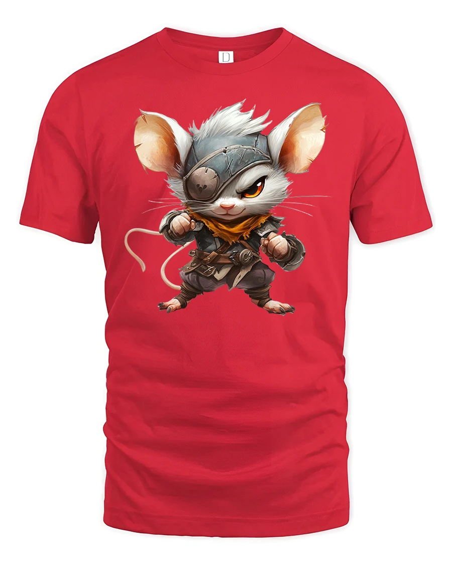 Featuring a small but fierce mouse warrior with an eyepatch, spiky hair, and full armor gear, this tee captures the heart of every fantasy lover and adventurer.