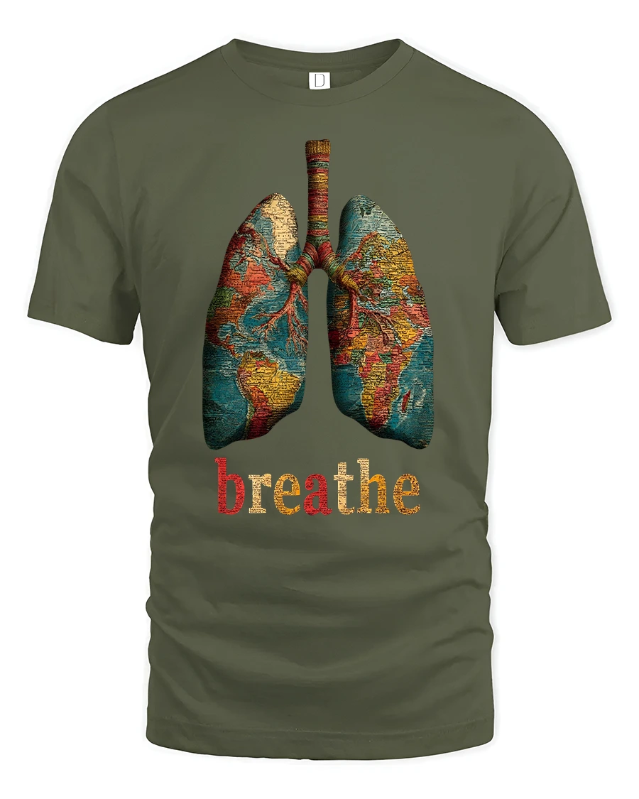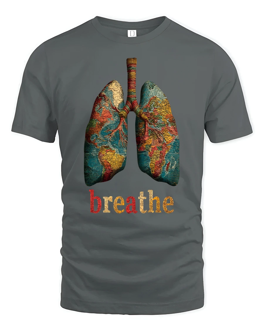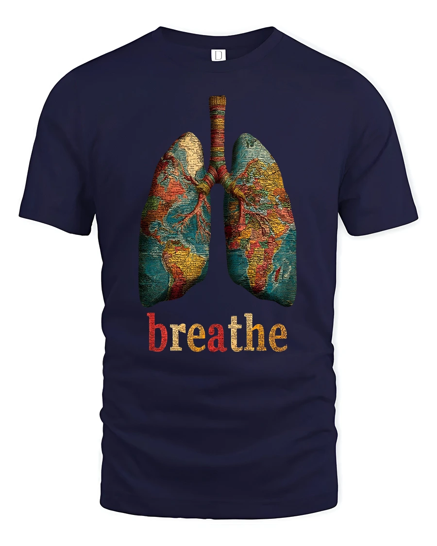 This Breathe World Map Lungs Tee blends mindfulness, art, and global inspiration in one unique design. Featuring beautifully illustrated lungs filled with a detailed world map, this graphic reminds you to pause, breathe, and stay grounded. The bold “breathe” text adds meaningful impact, making this tee perfect for anyone who values wellness, inner peace, or a deeper connection to the world around them.