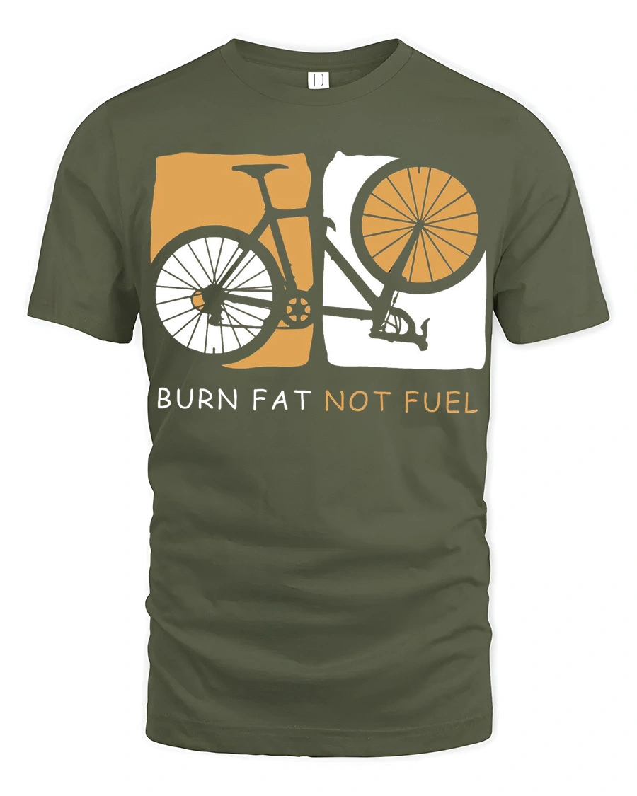 Burn Fat Not Fuel Cycling Motivation Graphic T Shirt Design delivers a bold and inspiring message that every cyclist can relate to.