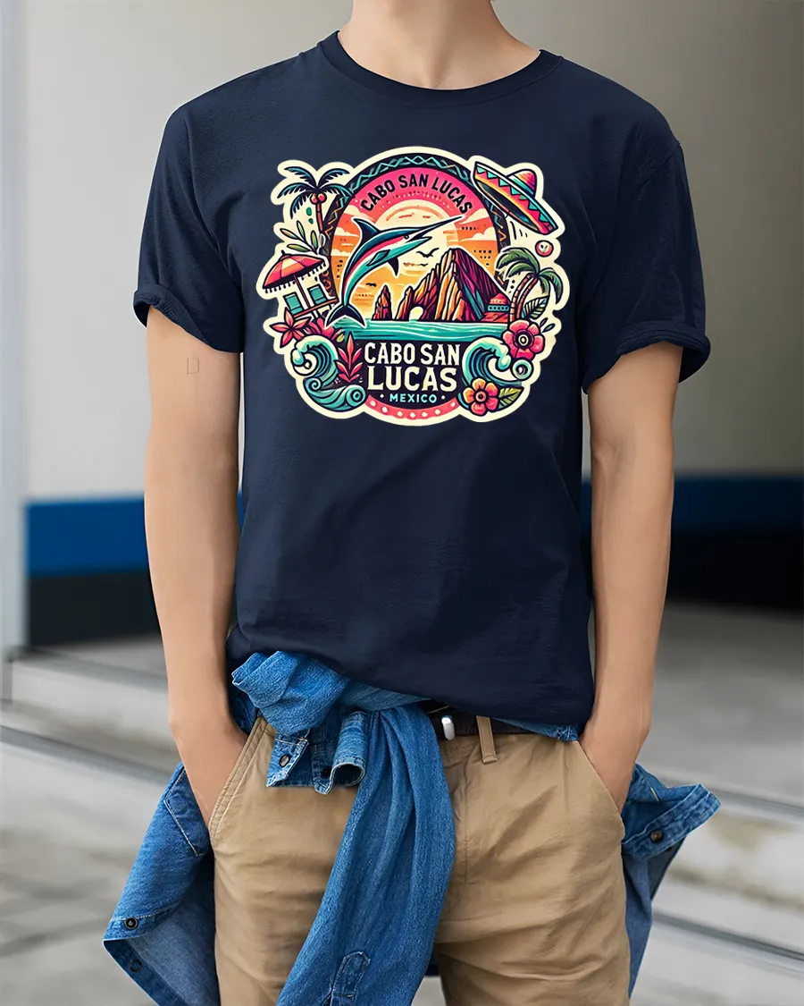 Whether you’ve visited Cabo, dream of going, or just love tropical destination art, the Cabo San Lucas Mexico Artwork Colorful Beach Graphic T-Shirt makes a standout addition to any collection. It also makes a thoughtful gift for travelers, beach lovers, and anyone who enjoys colorful scenic graphics. Add this lively design to your wardrobe and carry the Cabo spirit wherever you go.