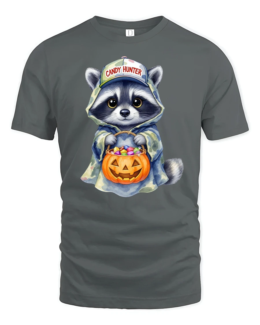 Celebrate Halloween with smiles and sweetness in the Candy Hunter Raccoon Funny Halloween Trick Tee.