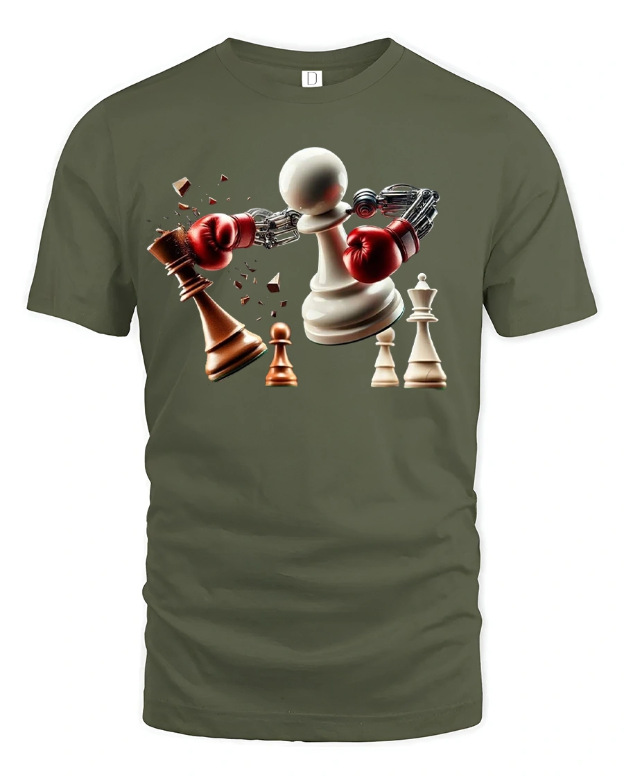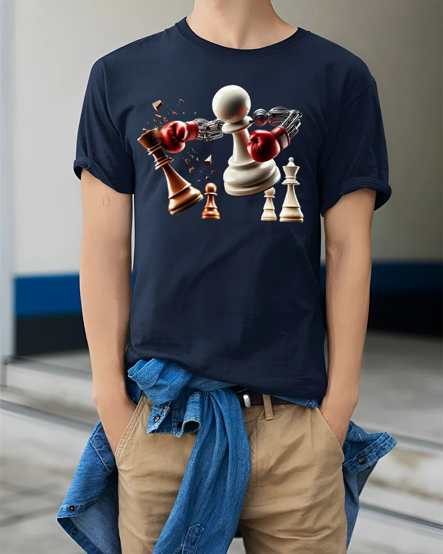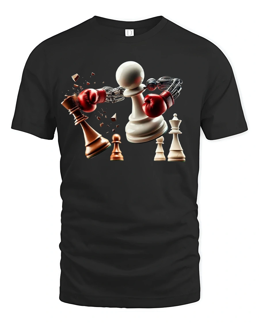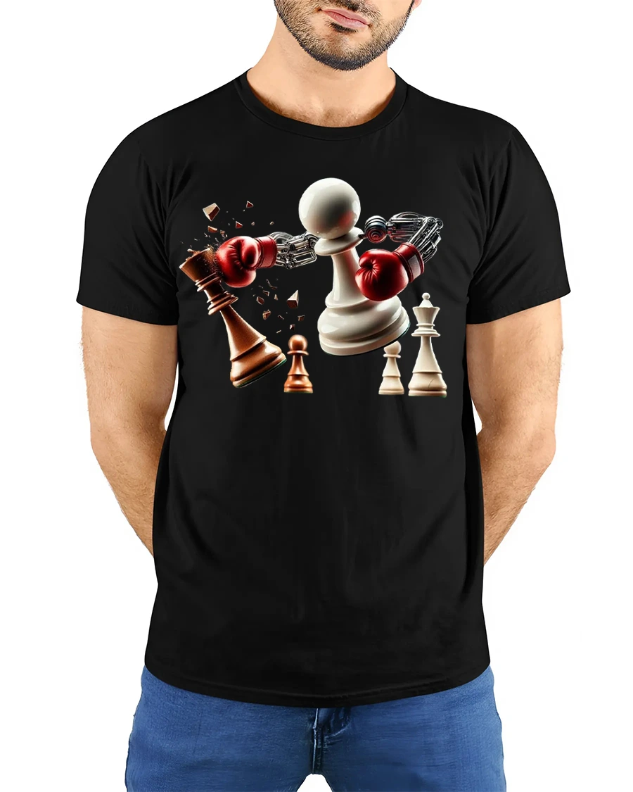 Featuring a powerful pawn with boxing gloves smashing its opponent, this tee perfectly represents the balance between strategy and strength.