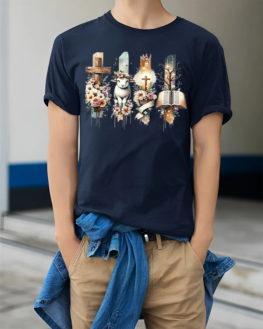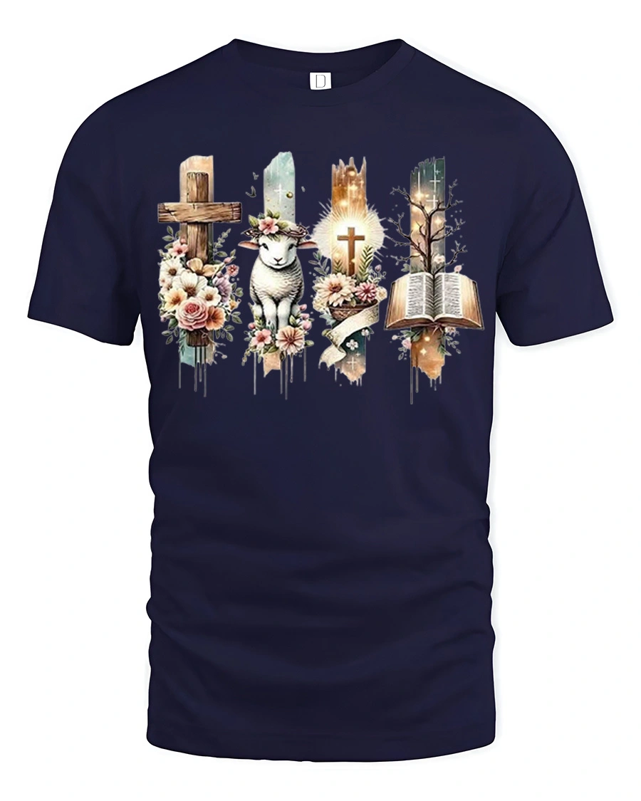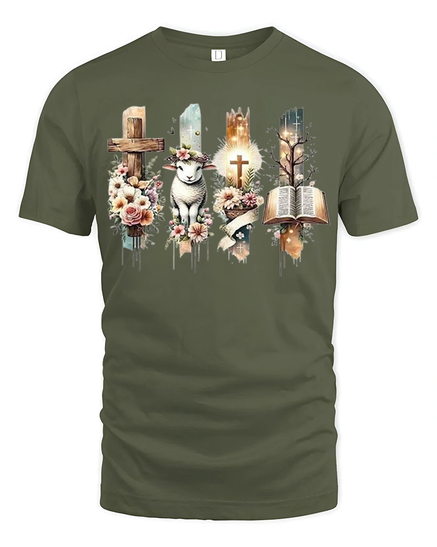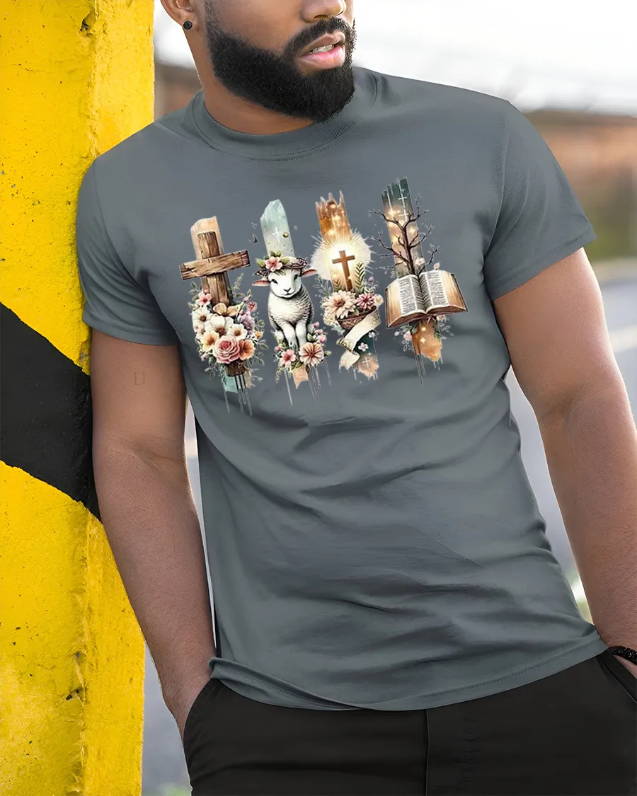 Christian Faith Cross Lamb Bible Floral Spiritual Graphic Tee blends artistic beauty with symbolic meaning to create a thoughtful expression of belief.
