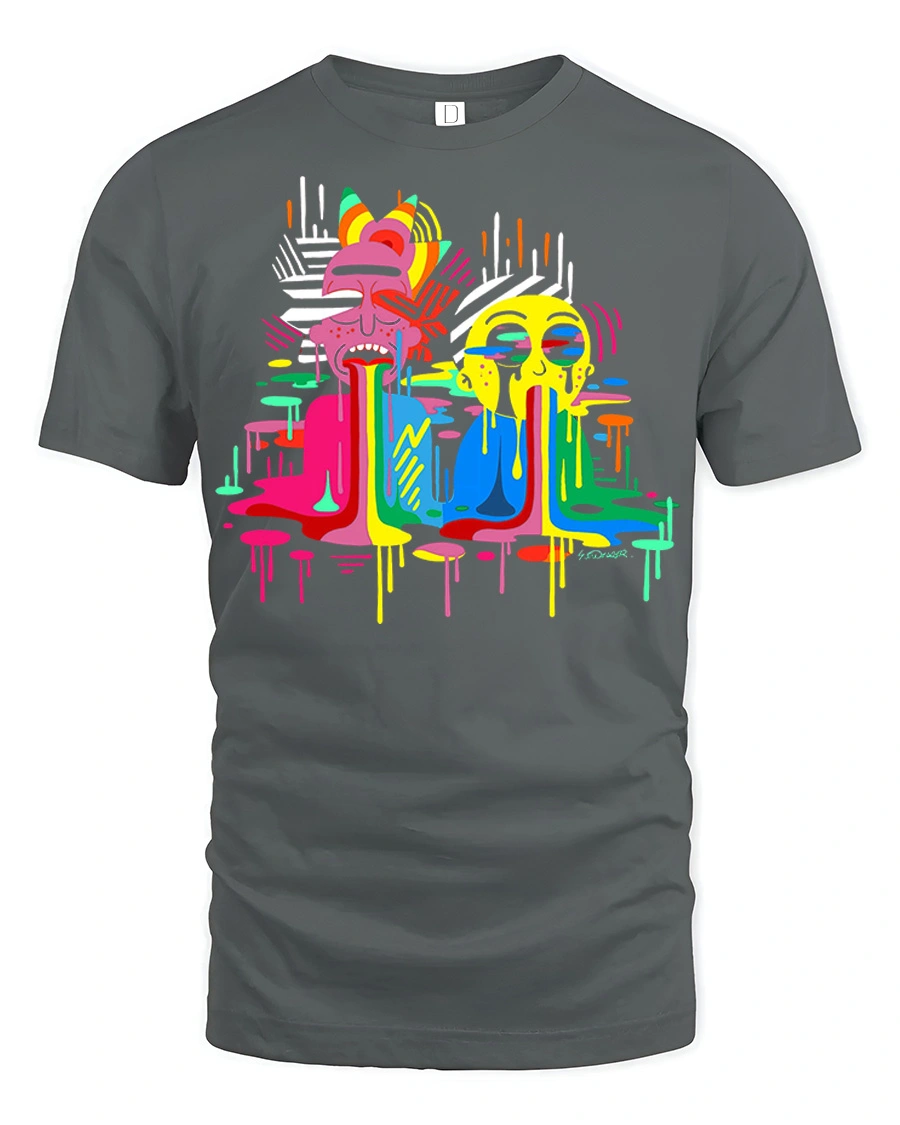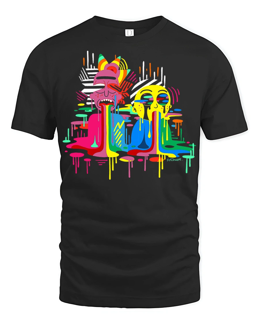 Color Drip Cartoon Faces Graphic T Shirt Street Art Tee is a bold and creative design that features colorful cartoon faces with melting paint drip effects in a modern street art style. The vibrant colors and abstract graffiti inspired artwork create a unique and eye catching graphic that stands out in any casual outfit. This graphic t shirt is perfect for people who love streetwear fashion, urban art, and colorful artistic designs.