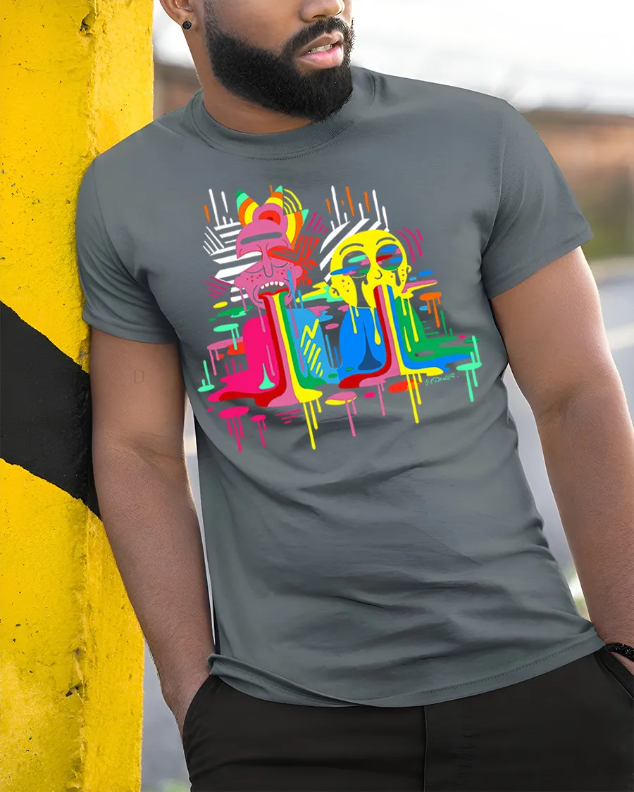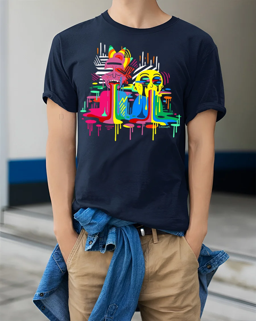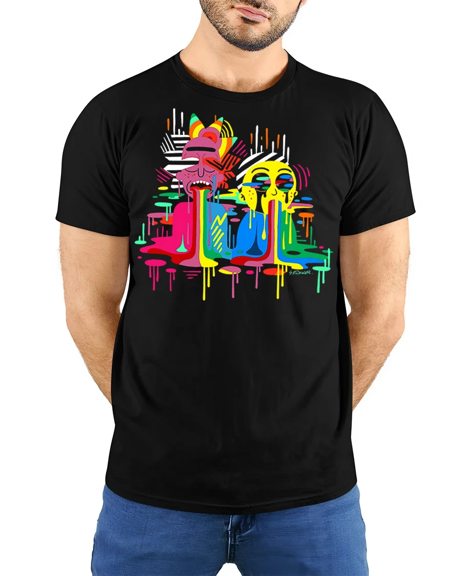This graphic t shirt is made from soft comfortable fabric that feels breathable and smooth all day. The high quality print keeps the colors bright and detailed even after many washes. This shirt is great for casual wear, streetwear outfits, parties, festivals, or everyday fashion. The colorful drip cartoon design adds a creative urban style to your wardrobe and makes a great addition to any graphic tee collection.