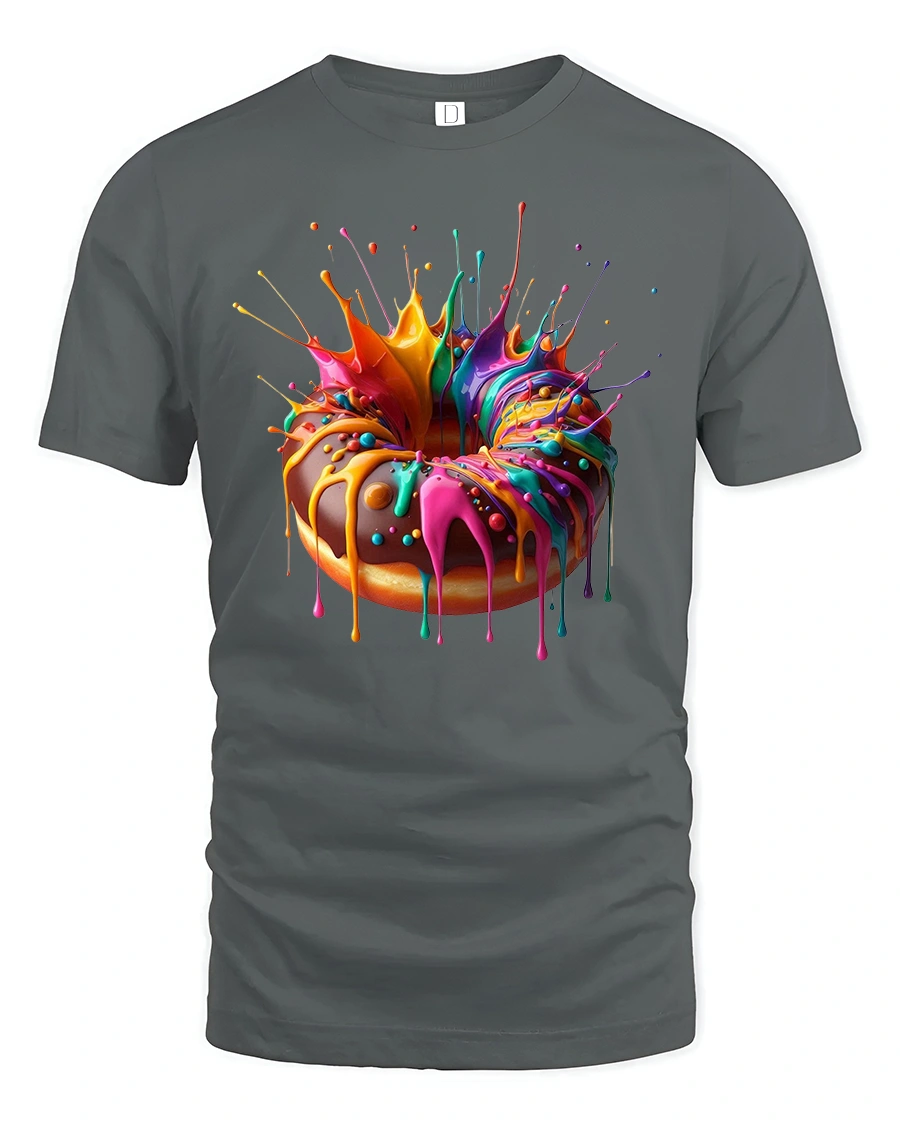 Whether worn casually or as a standout piece in your outfit rotation, this Color Splash Donut Art Tee adds a fun twist that makes you feel confident and creative. It is a great choice for anyone who loves vibrant artistic fashion and wants a tee that instantly brightens the day.