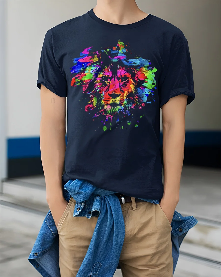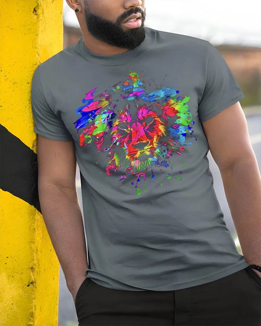 Color Splash Lion Graphic T Shirt Bold Artistic Streetwear Tee brings powerful energy and creative expression into everyday style.
