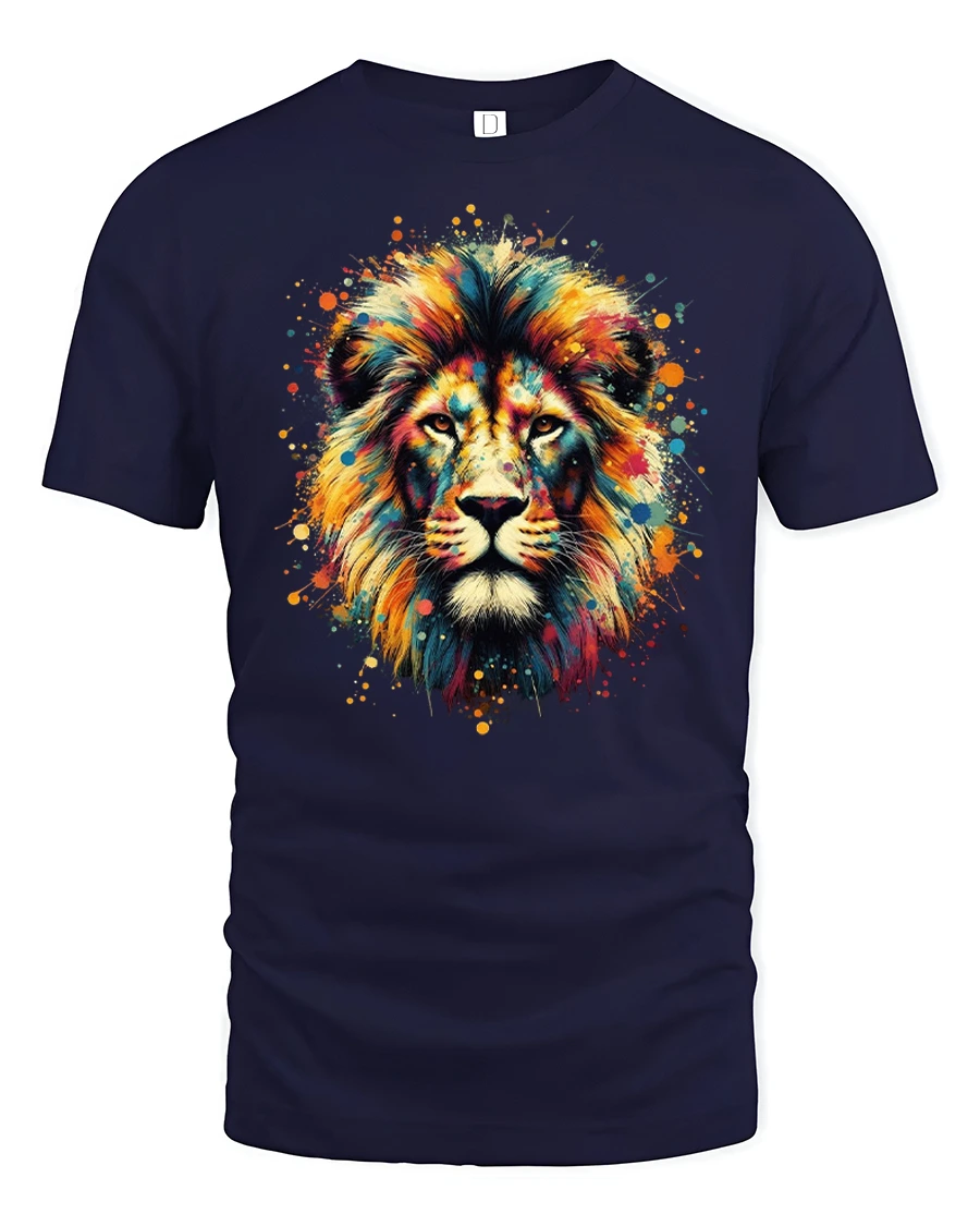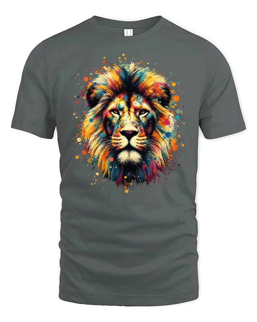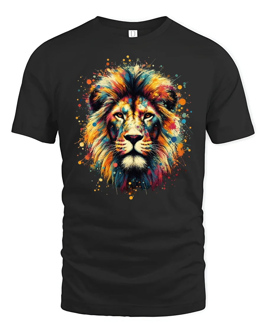 Color Splash Lion Portrait Artistic Paint Style Graphic Tee is ideal for anyone who loves wildlife art and bold designs.