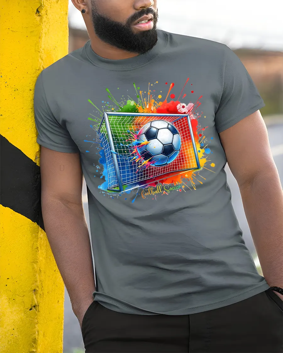 Crafted with soft, breathable, high-quality fabric, this tee offers comfort for practices, school days, weekend matches, or casual wear. The bold and colorful design instantly stands out, making it a perfect choice for soccer lovers of all ages. Kids, teens, and adults will love wearing a shirt that showcases their passion for the sport with this eye-catching splatter-art effect.