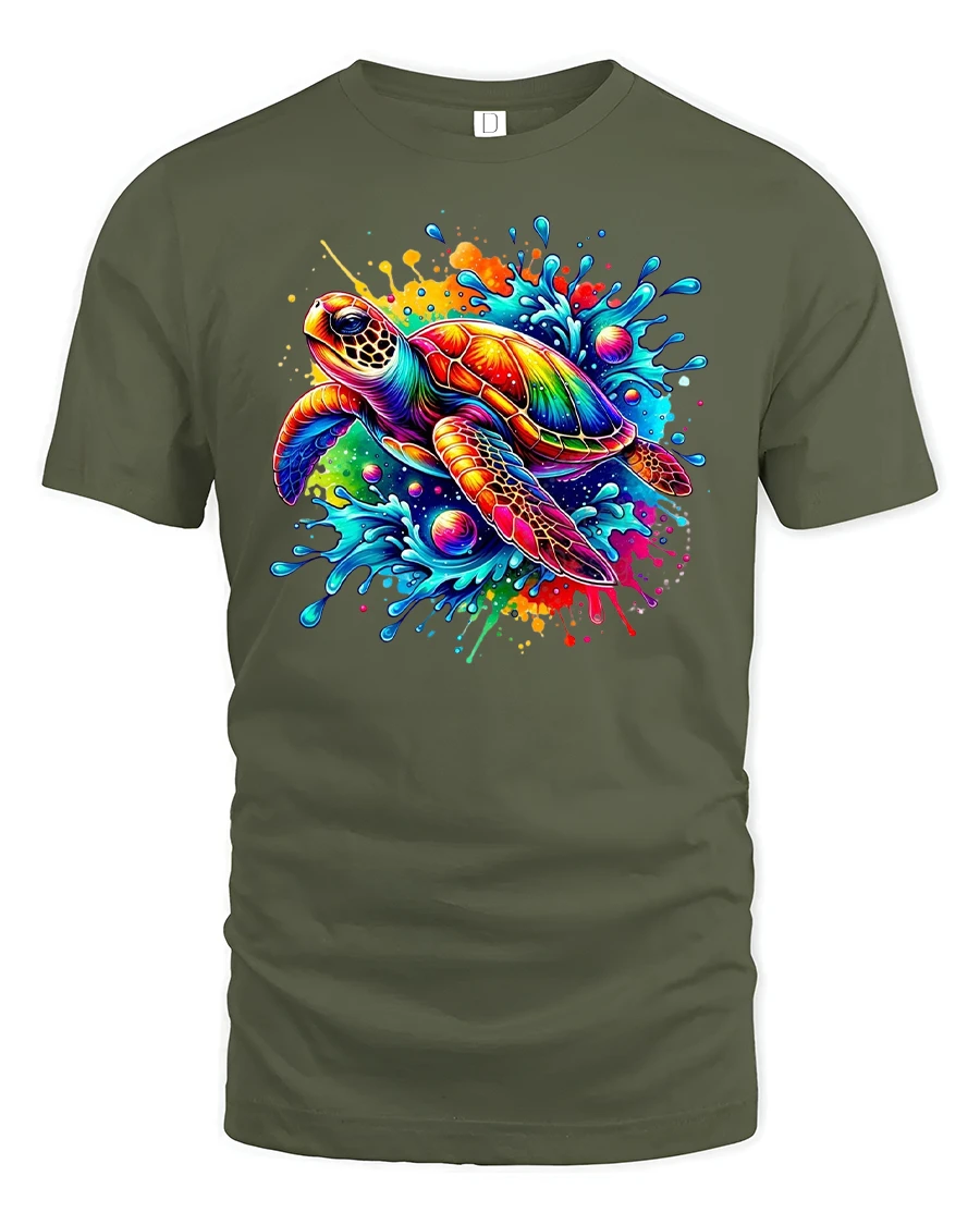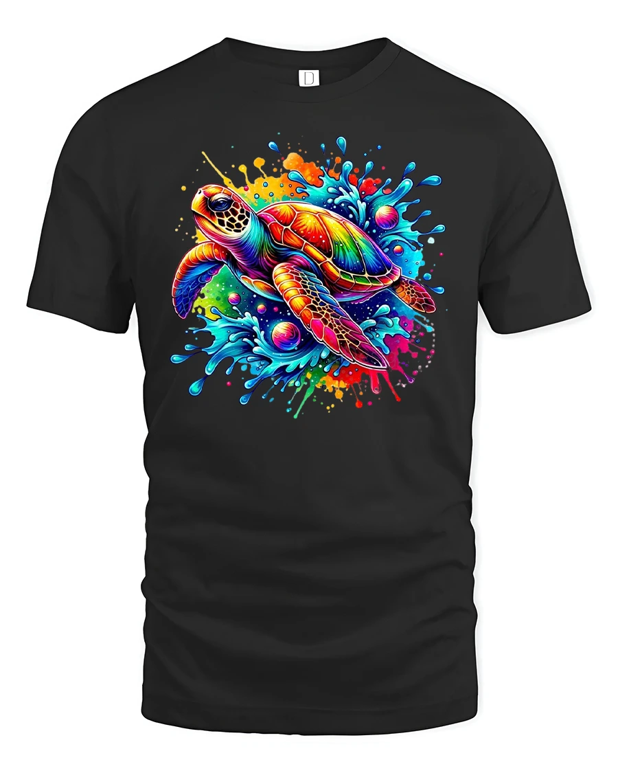 Dive into tropical vibes with this Color Splash Turtle T-Shirt, featuring a vibrant sea turtle surrounded by a burst of rainbow colors and ocean waves. This eye-catching design celebrates marine life and beach energy, perfect for ocean lovers, surfers, and anyone who loves bold, colorful fashion. It’s a fun and stylish way to express your love for nature and summer adventures.
