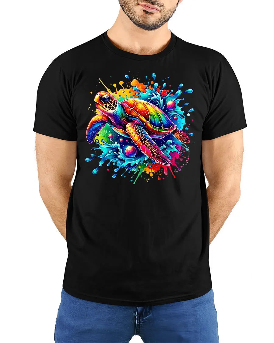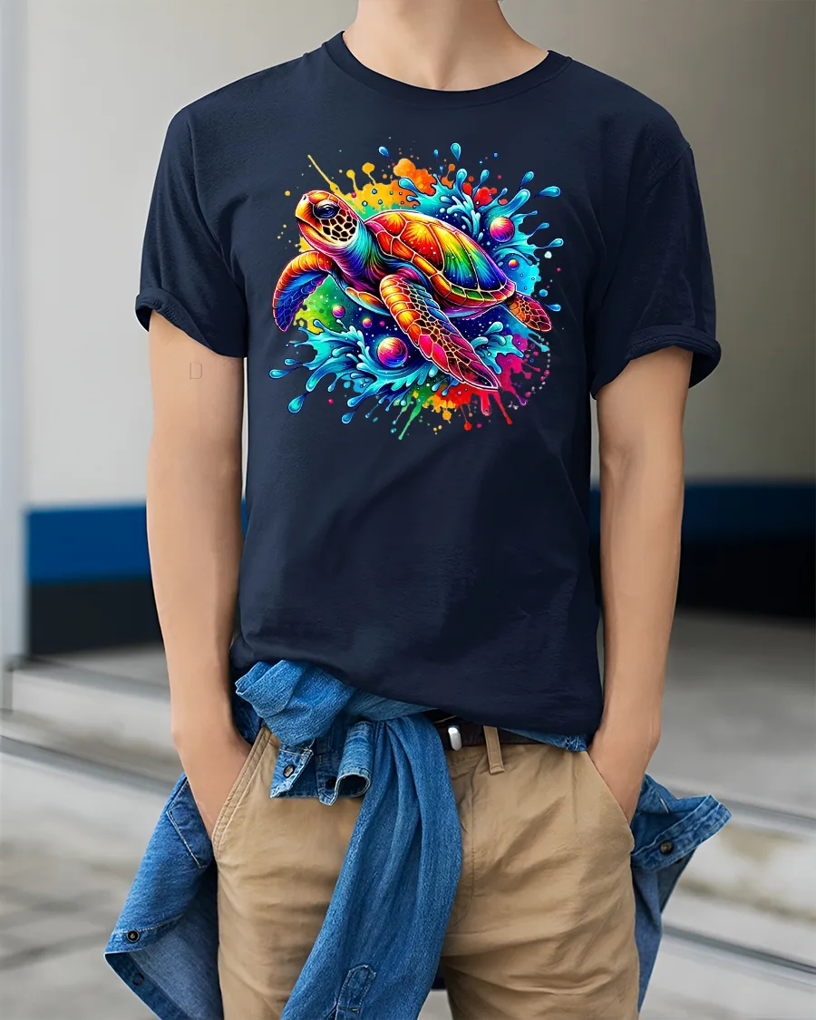 Crafted from soft, breathable cotton, the Color Splash Turtle T-Shirt offers ultimate comfort while keeping its colors bright and crisp wash after wash. The detailed design captures every splash and hue, making it ideal for beach trips, vacations, or casual everyday wear.