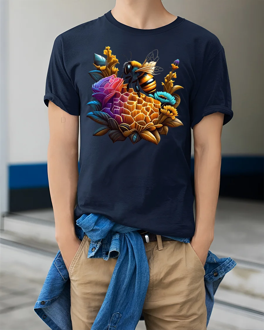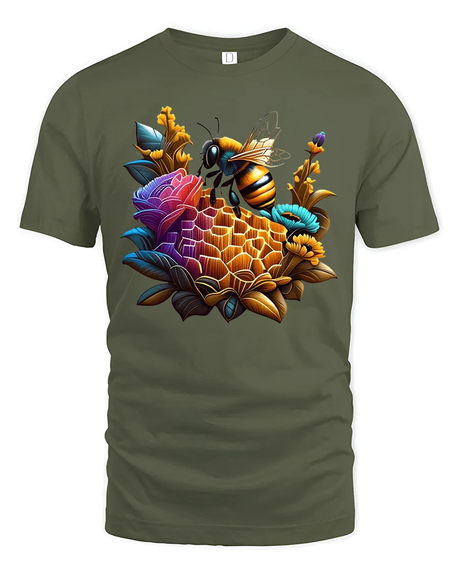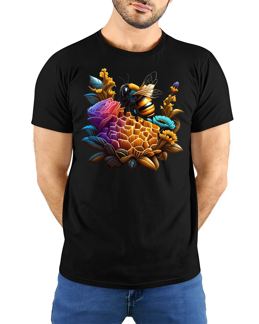 Colorful Bee and Honeycomb Nature Art T-Shirt celebrates the beauty and harmony of nature in vivid color.