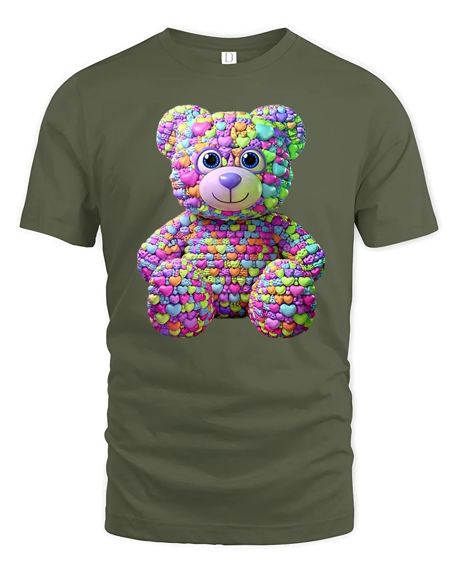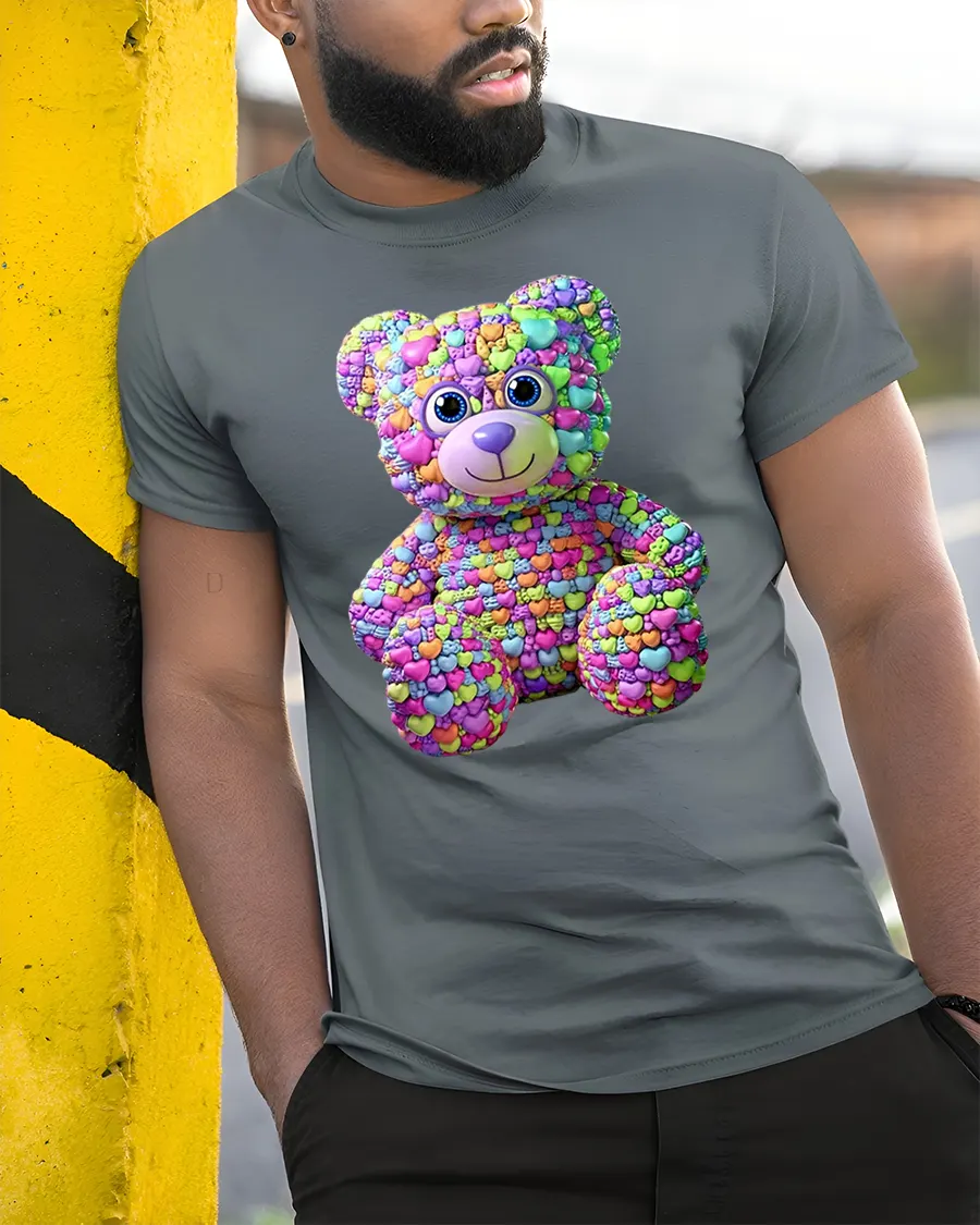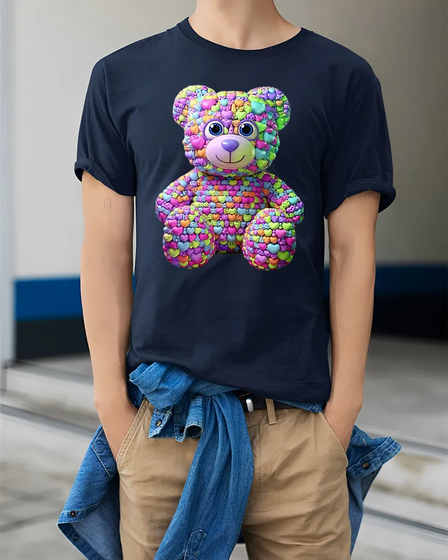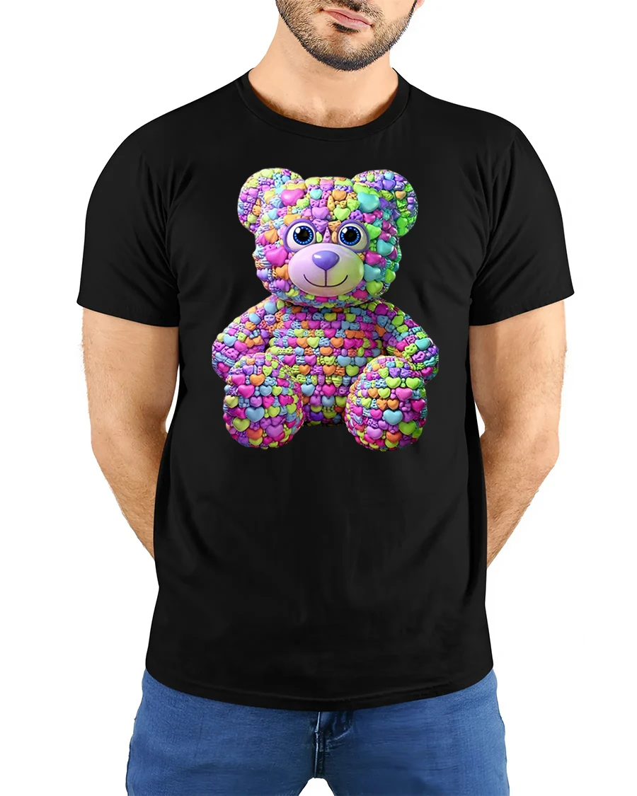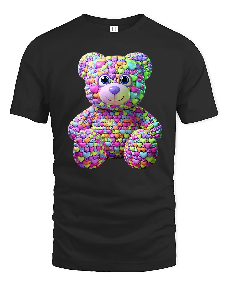 Colorful Candy Heart Teddy Bear Graphic T Shirt celebrates love, happiness, and playful personality in a creative and unforgettable way.