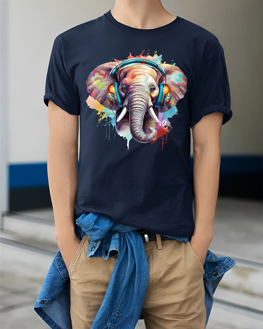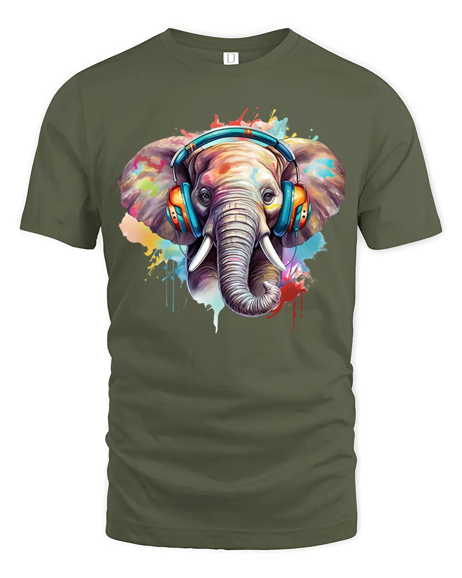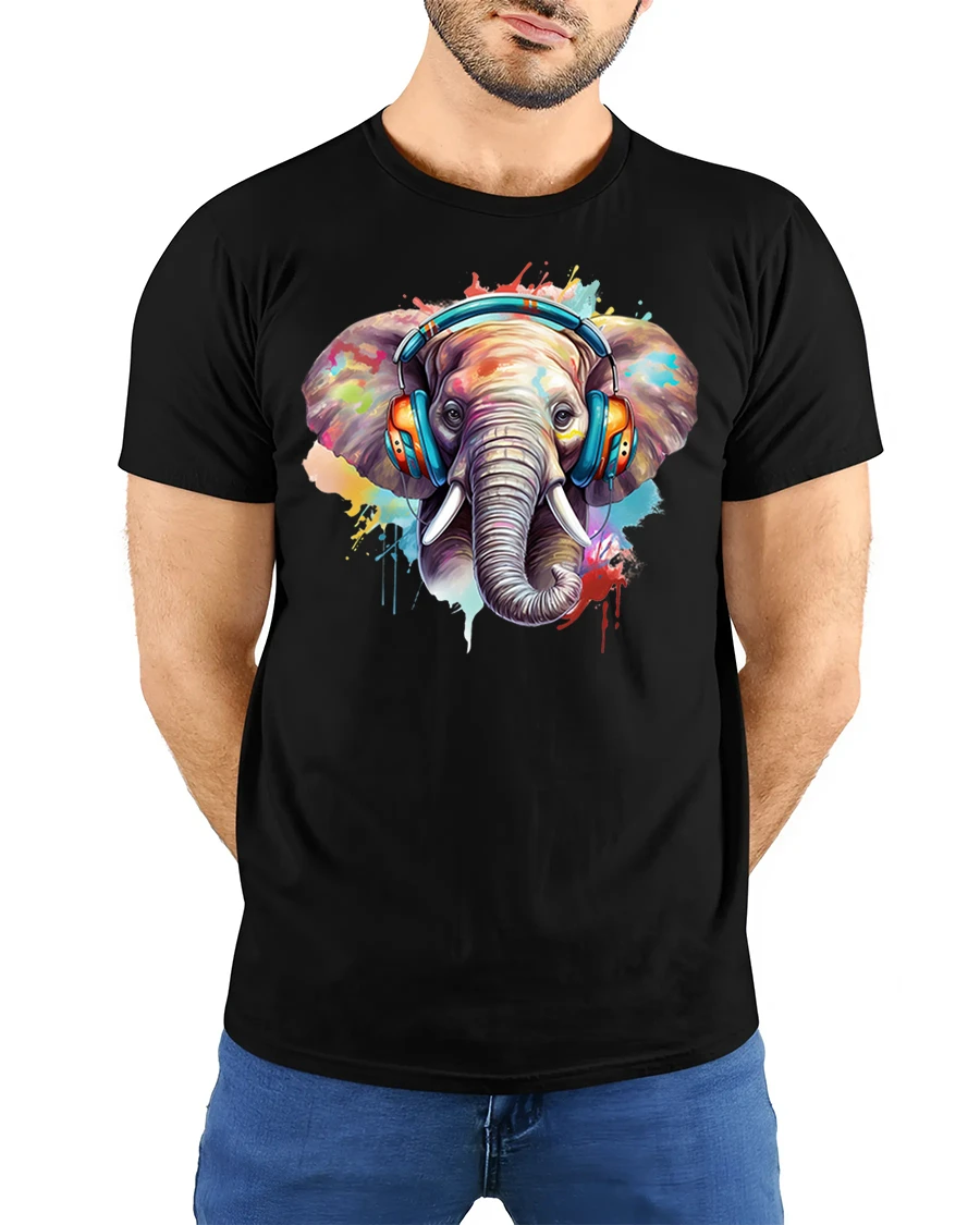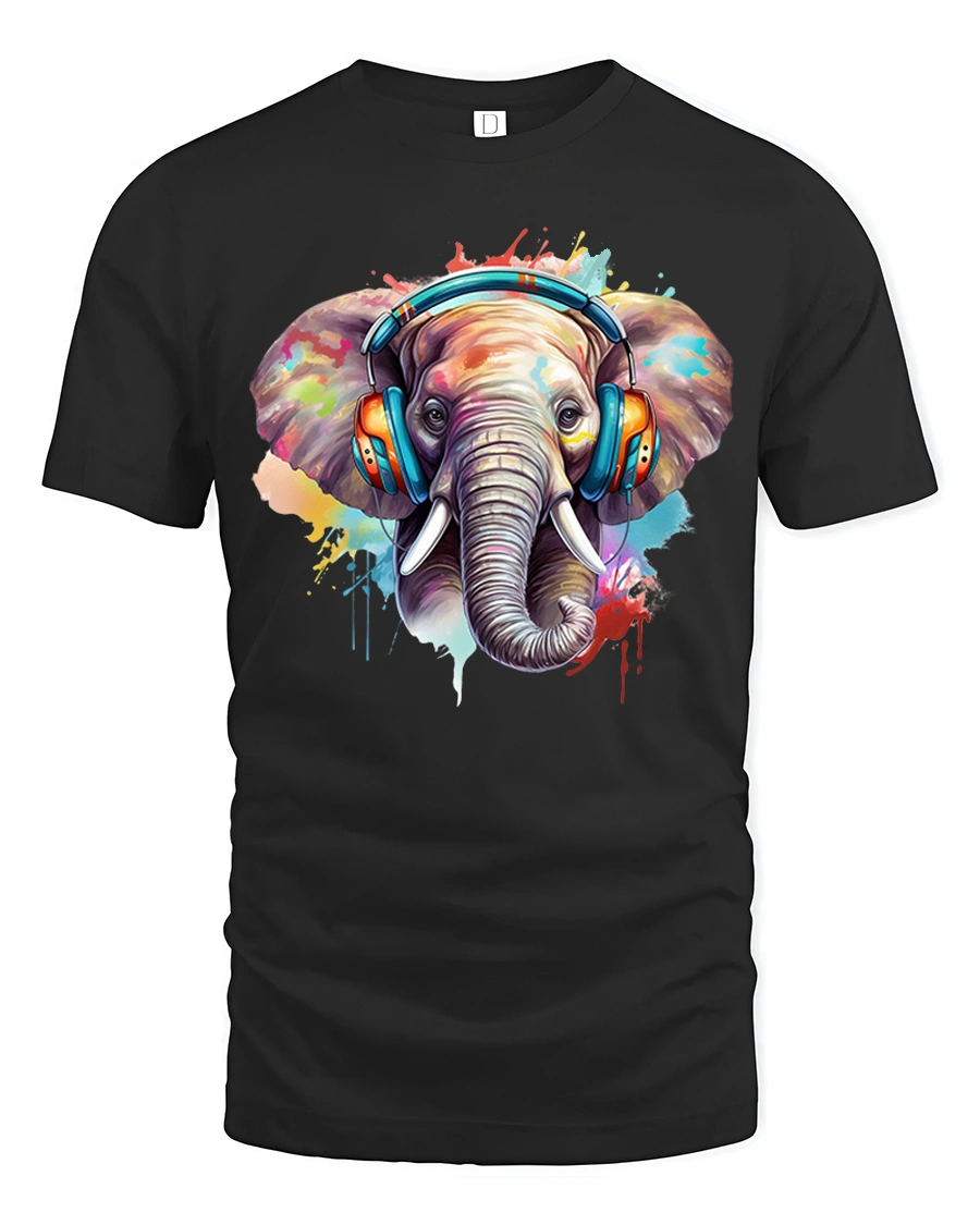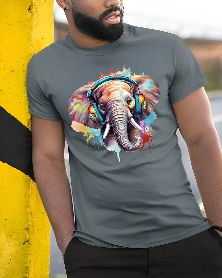 The Colorful Elephant With Headphones Graphic Tshirt combines music inspired energy with expressive artistic design.