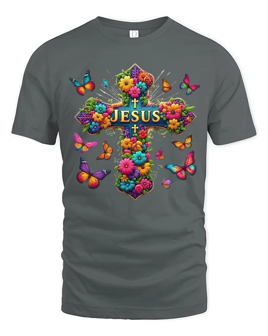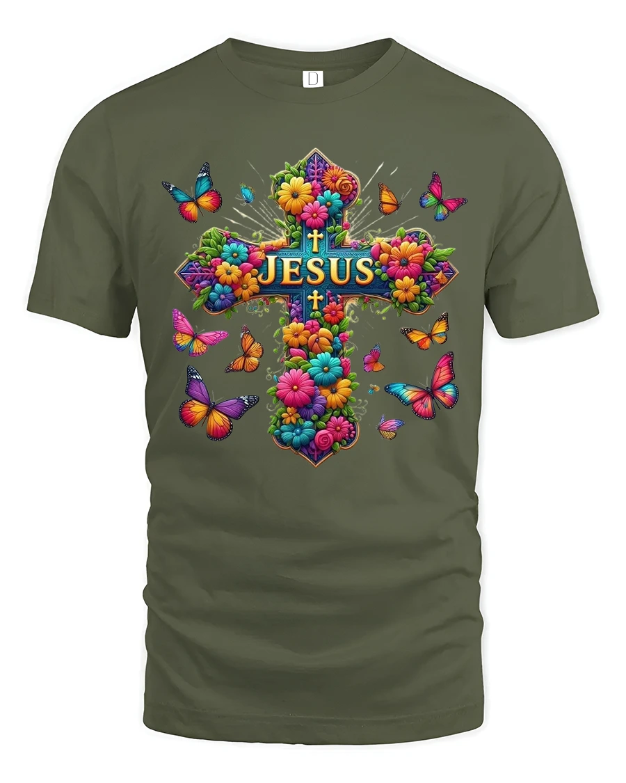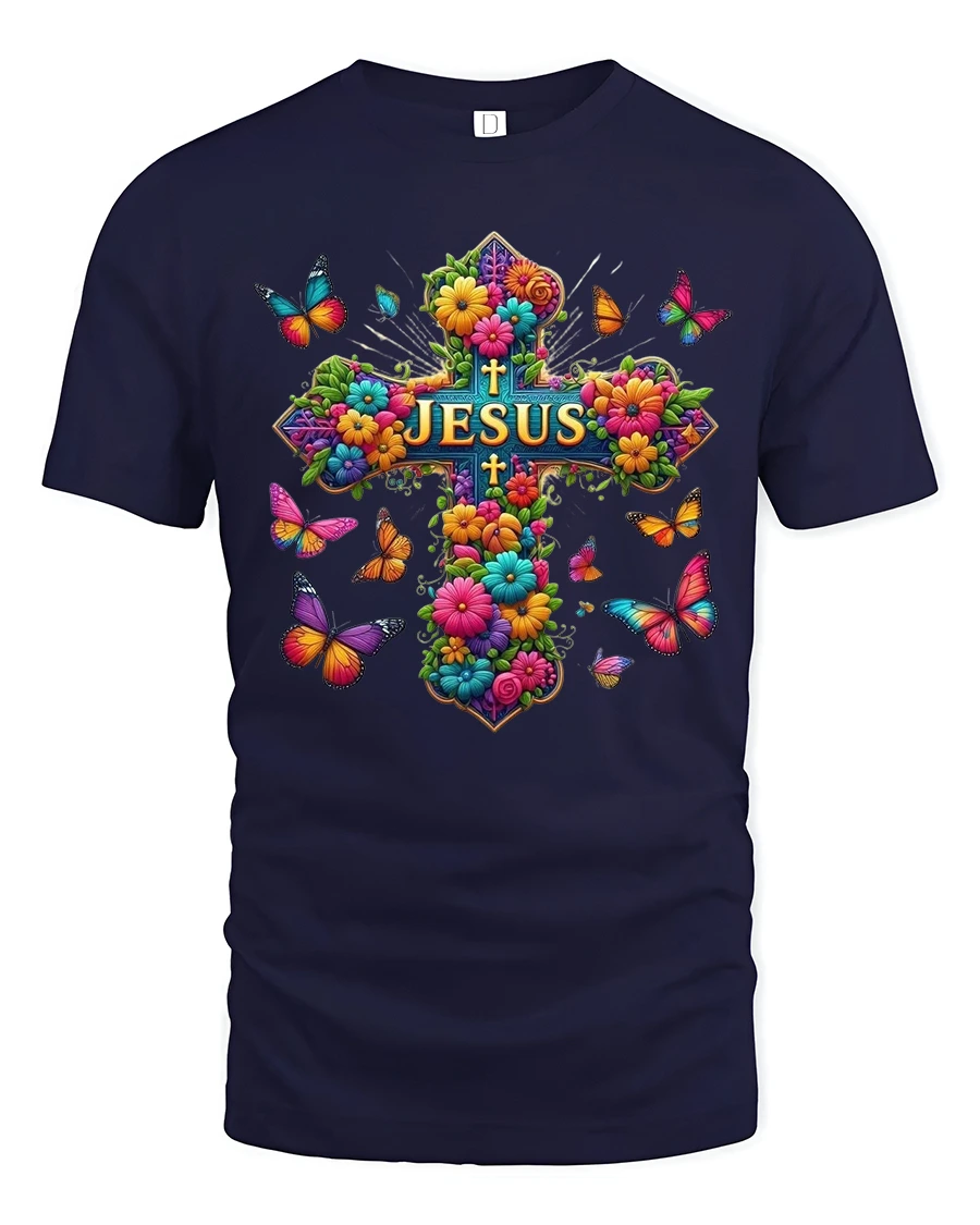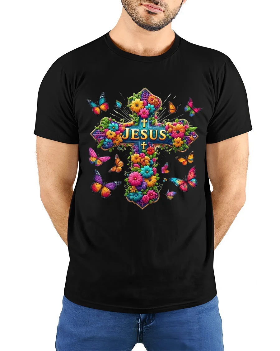 The Colorful Floral Cross Jesus Art Graphic Tshirt expresses faith hope and beauty through a vibrant artistic design.
