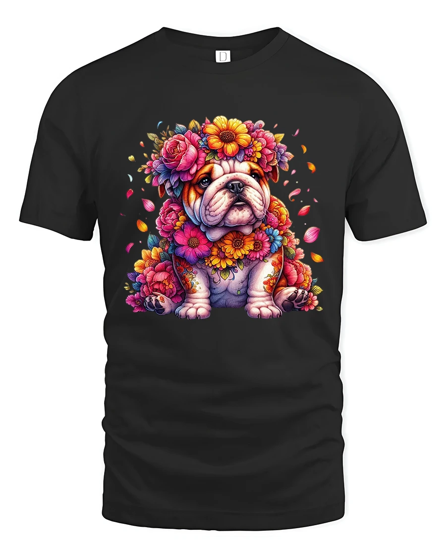 The Colorful French Bulldog Art Splash Cute Cartoon Graphic Tee brings joy and personality through a bold artistic puppy design.