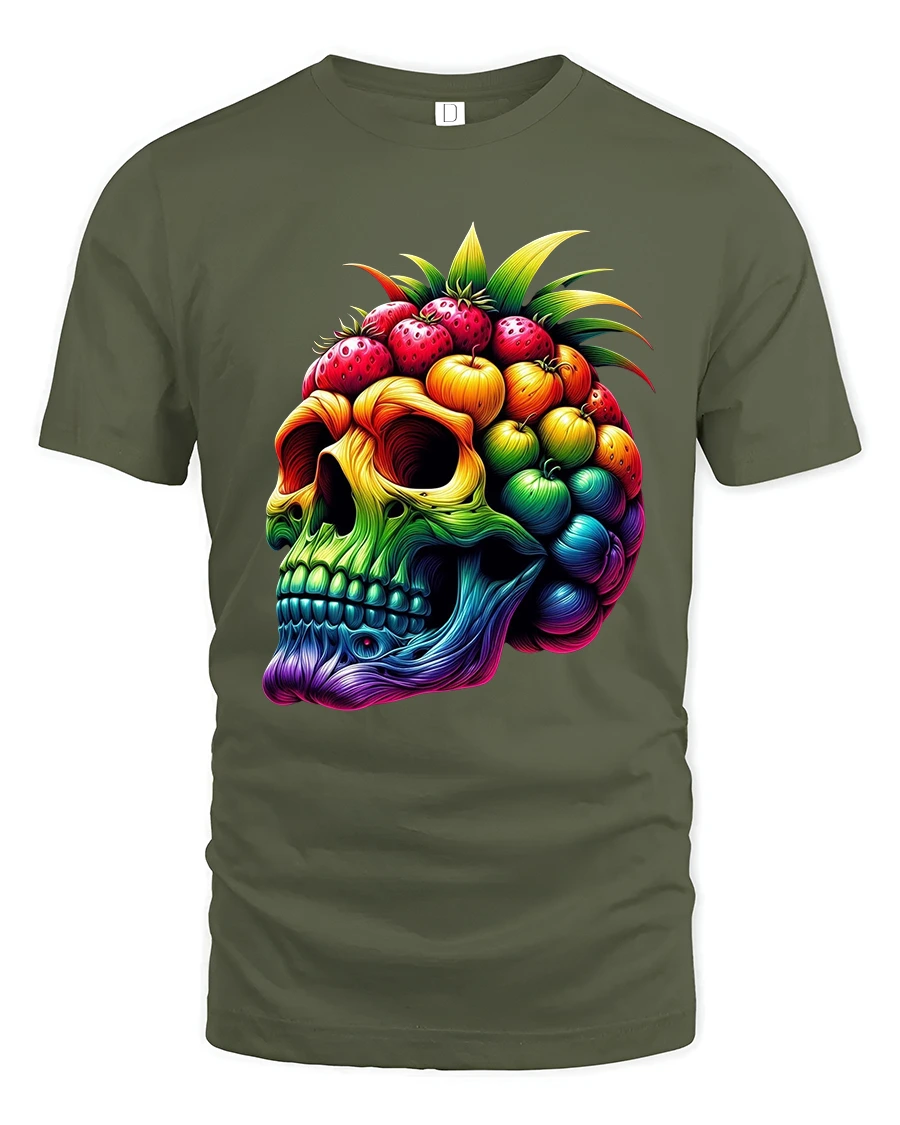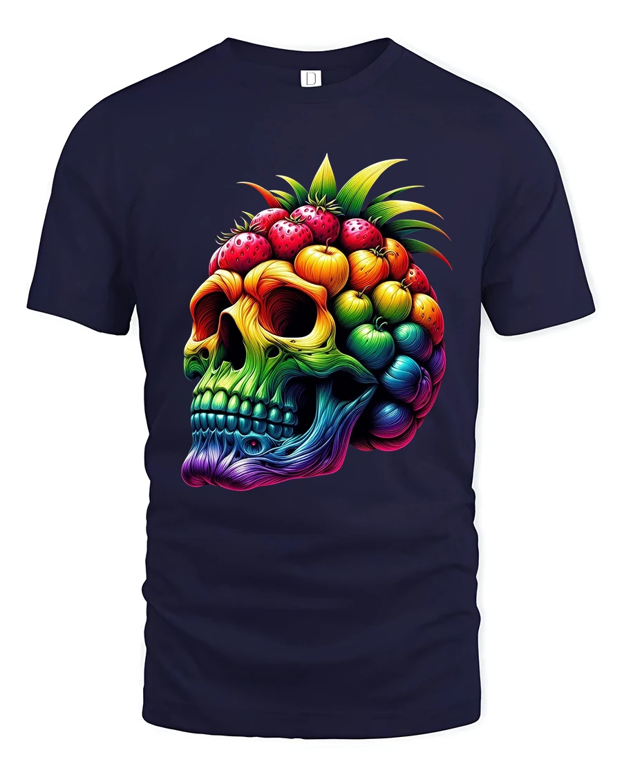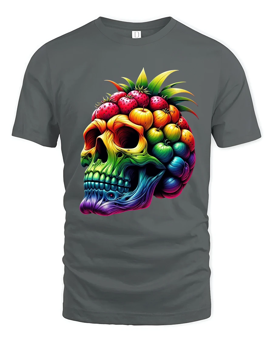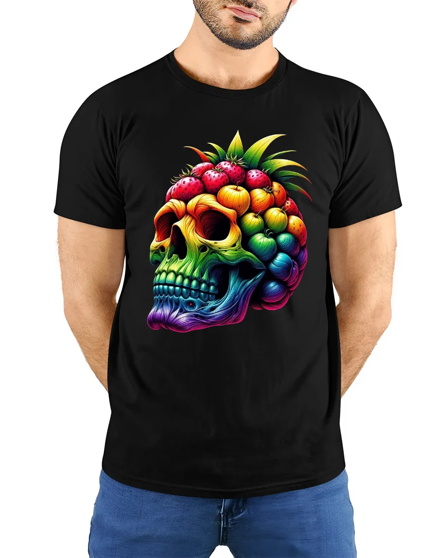 The Colorful Fruit Skull Art Graphic Tshirt With Bold Surreal Style represents individuality imagination and fearless self expression.