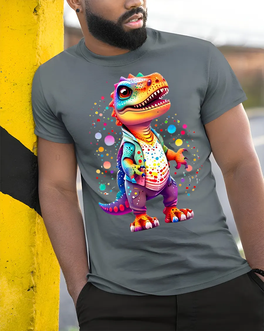 Colorful Graffiti Style Dinosaur Cartoon Art Fun Graphic Tshirt brings playful energy and creative style into everyday fashion.