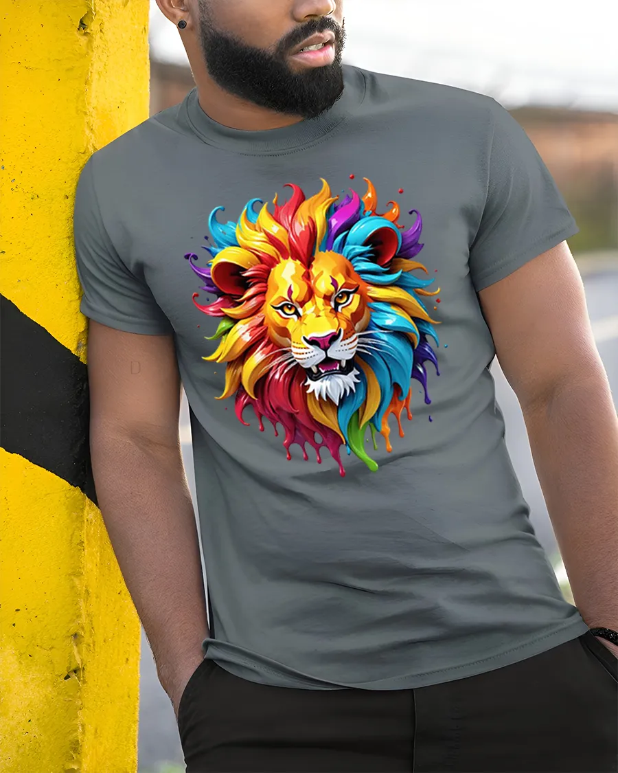 Colorful Lion Head Paint Splash Graphic T Shirt is a bold statement piece that celebrates courage, individuality, and artistic passion in a fresh and dynamic way.