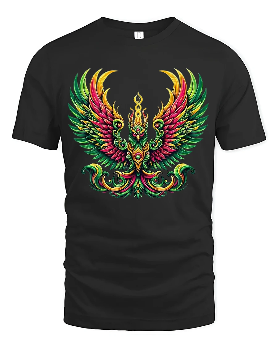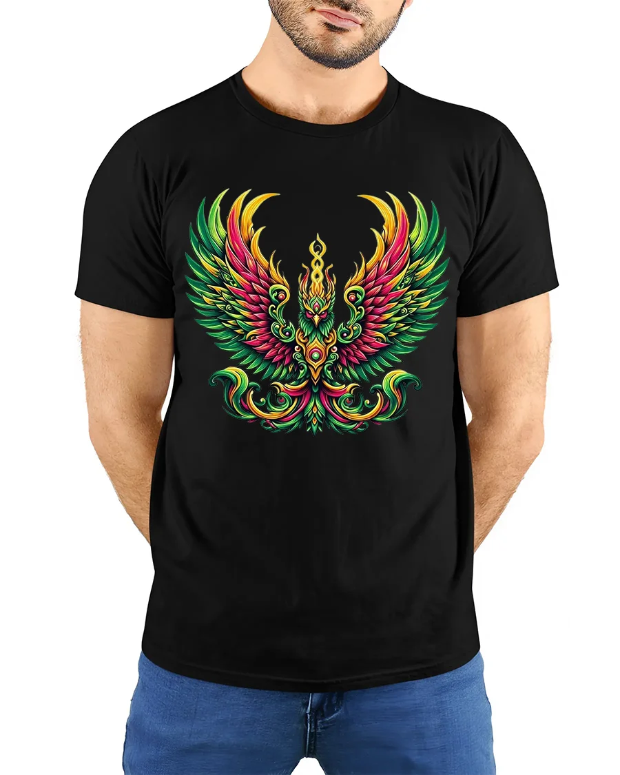 Colorful Phoenix Rising Fire Bird Graphic T Shirt celebrates resilience and bold individuality through eye catching artwork. It is a statement piece that reflects passion, renewal, and fearless self expression in a vibrant and contemporary design.