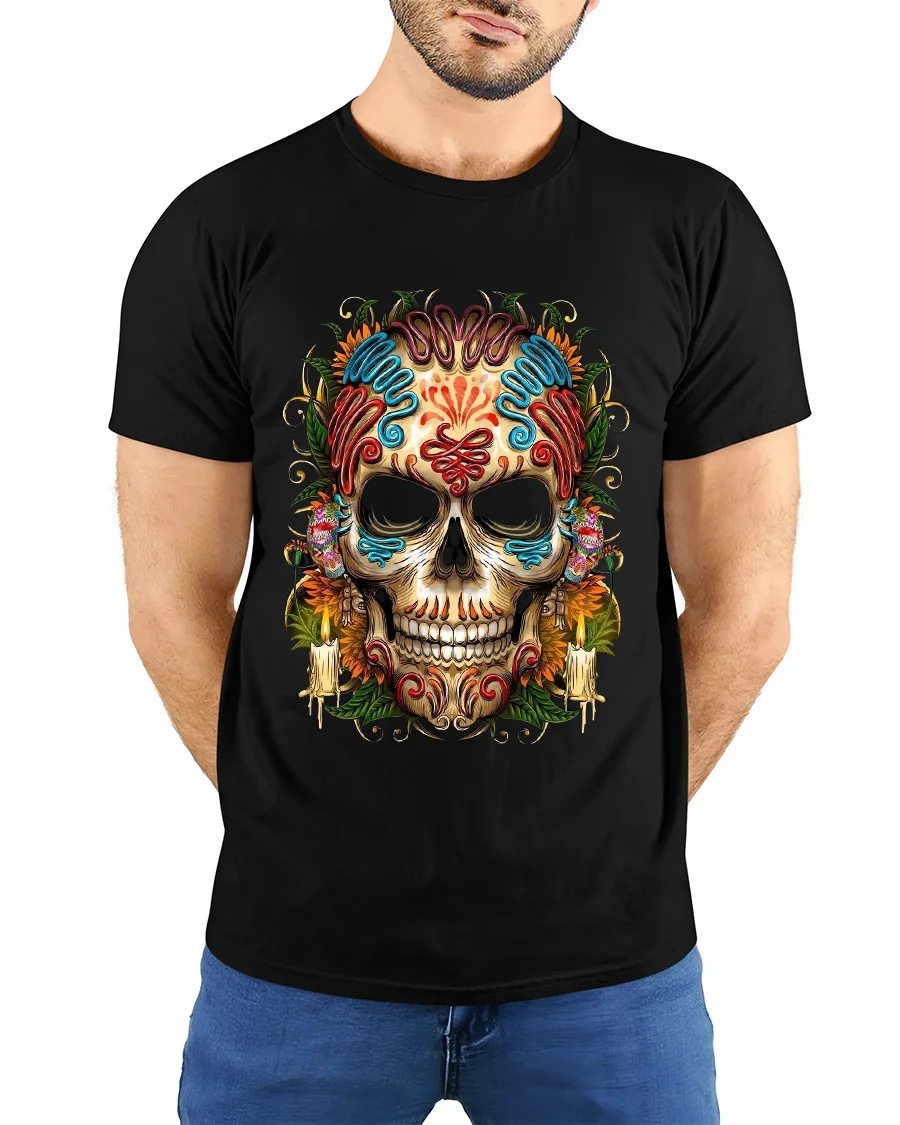 Crafted from soft breathable fabric, this t shirt provides lasting comfort while highlighting expressive artistry. The vivid sugar skull artwork pairs effortlessly with jeans, jackets, or layered streetwear, adding a dynamic and stylish edge to your look. Whether you appreciate decorative skull designs or bold artistic graphics, this tee brings color, personality, and standout visual impact to your everyday wardrobe.