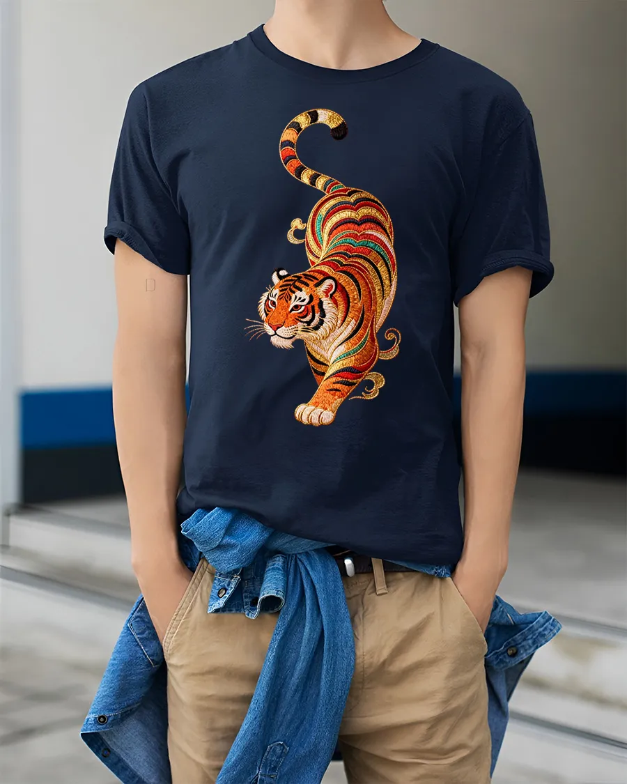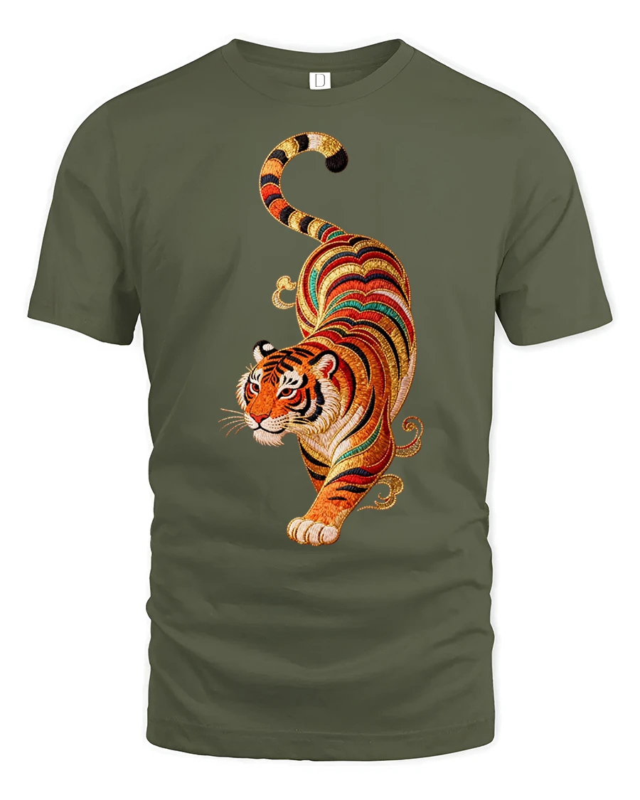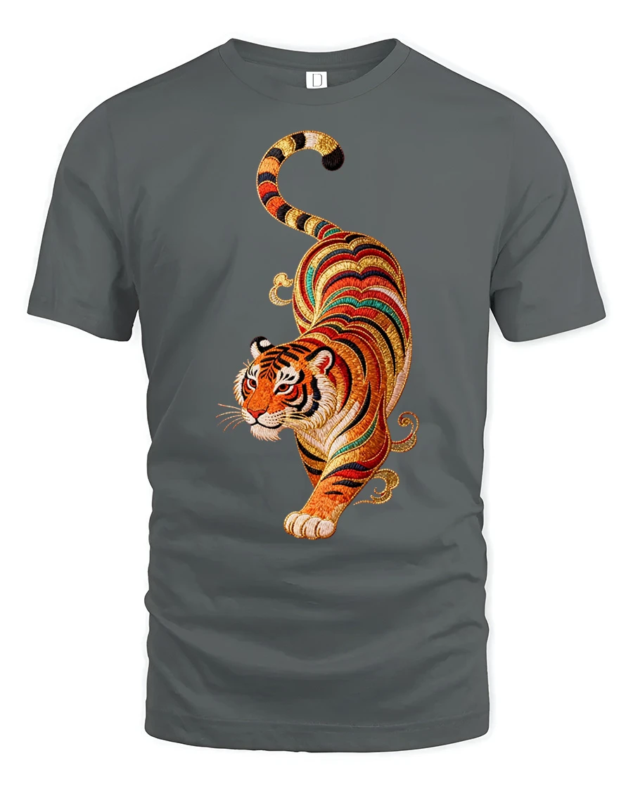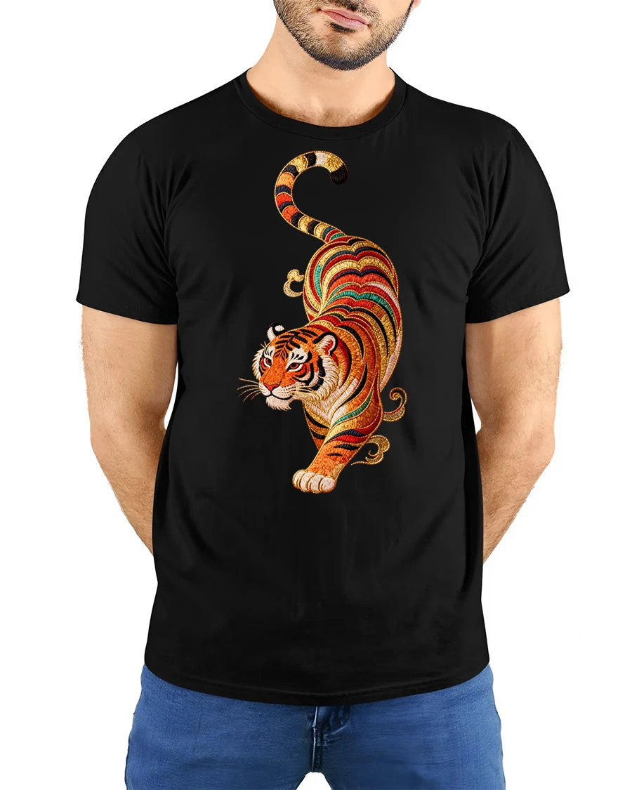Colorful Tiger Graphic T Shirt Artistic Animal Style Tee features a stunning and detailed tiger illustration with vibrant colors and artistic patterns that create a bold and elegant design. The powerful tiger artwork symbolizes strength, confidence, and wild beauty, making this tshirt a stylish and meaningful addition to any wardrobe. The artistic style gives the design a modern and creative look that stands out in any casual outfit.