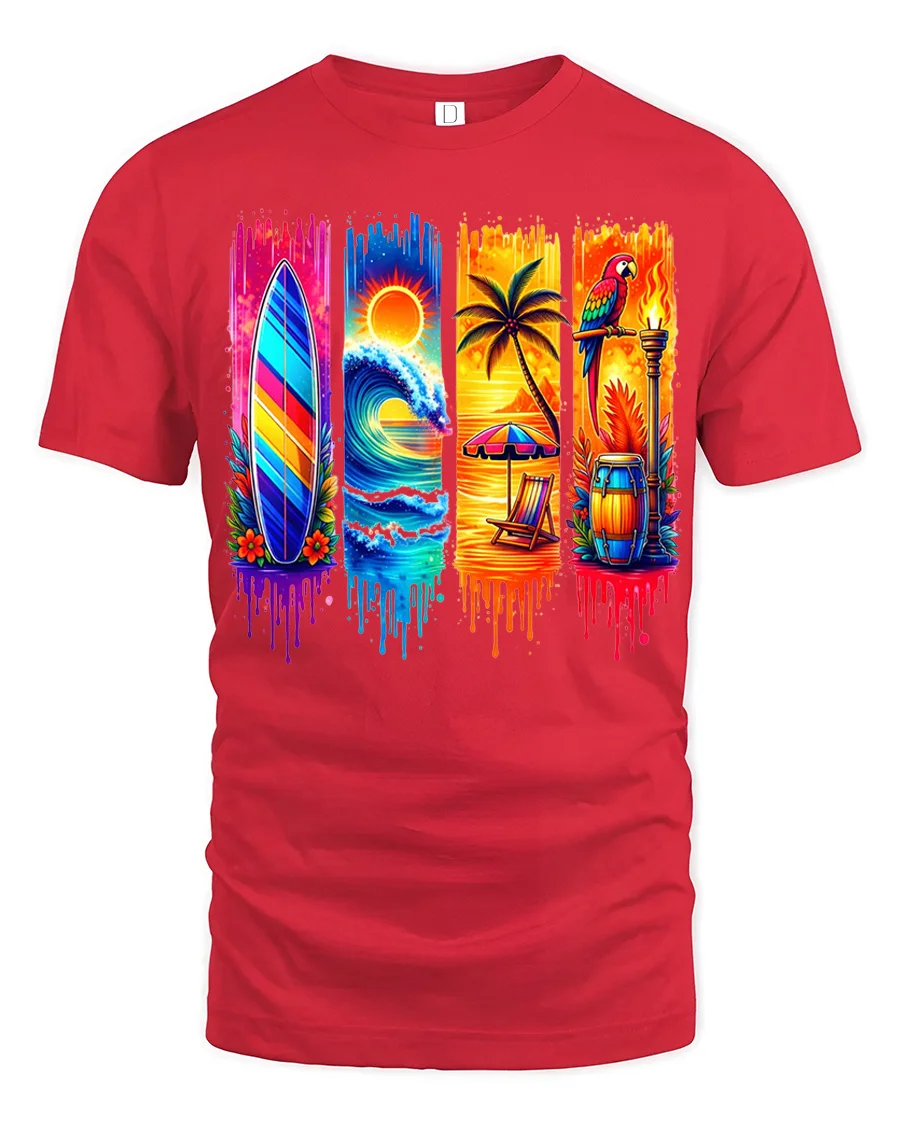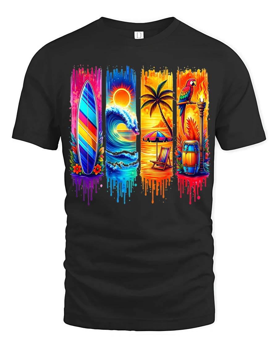 The Colorful Tropical Surf Beach Sunset Paradise Graphic Tshirt captures the vibrant spirit of island life through a bright and artistic design inspired by sunny coastal scenery.