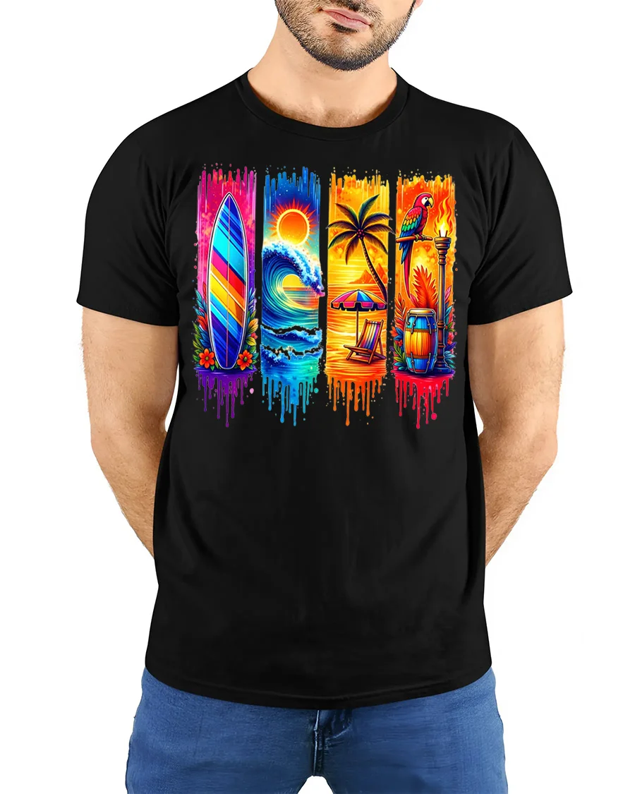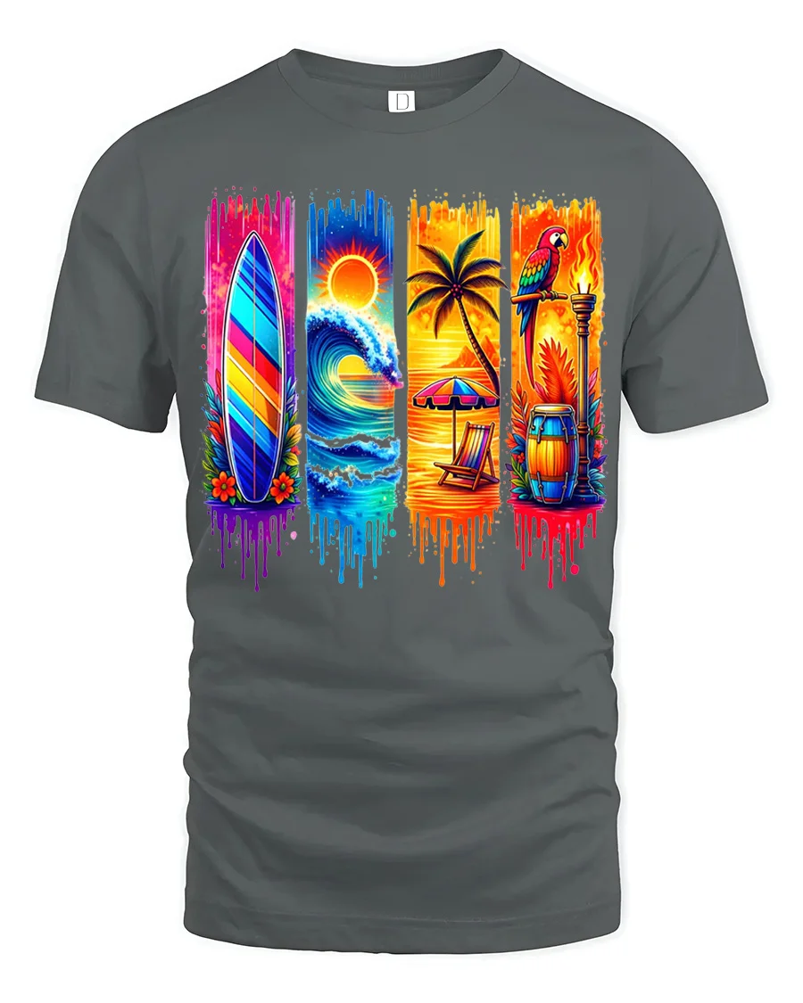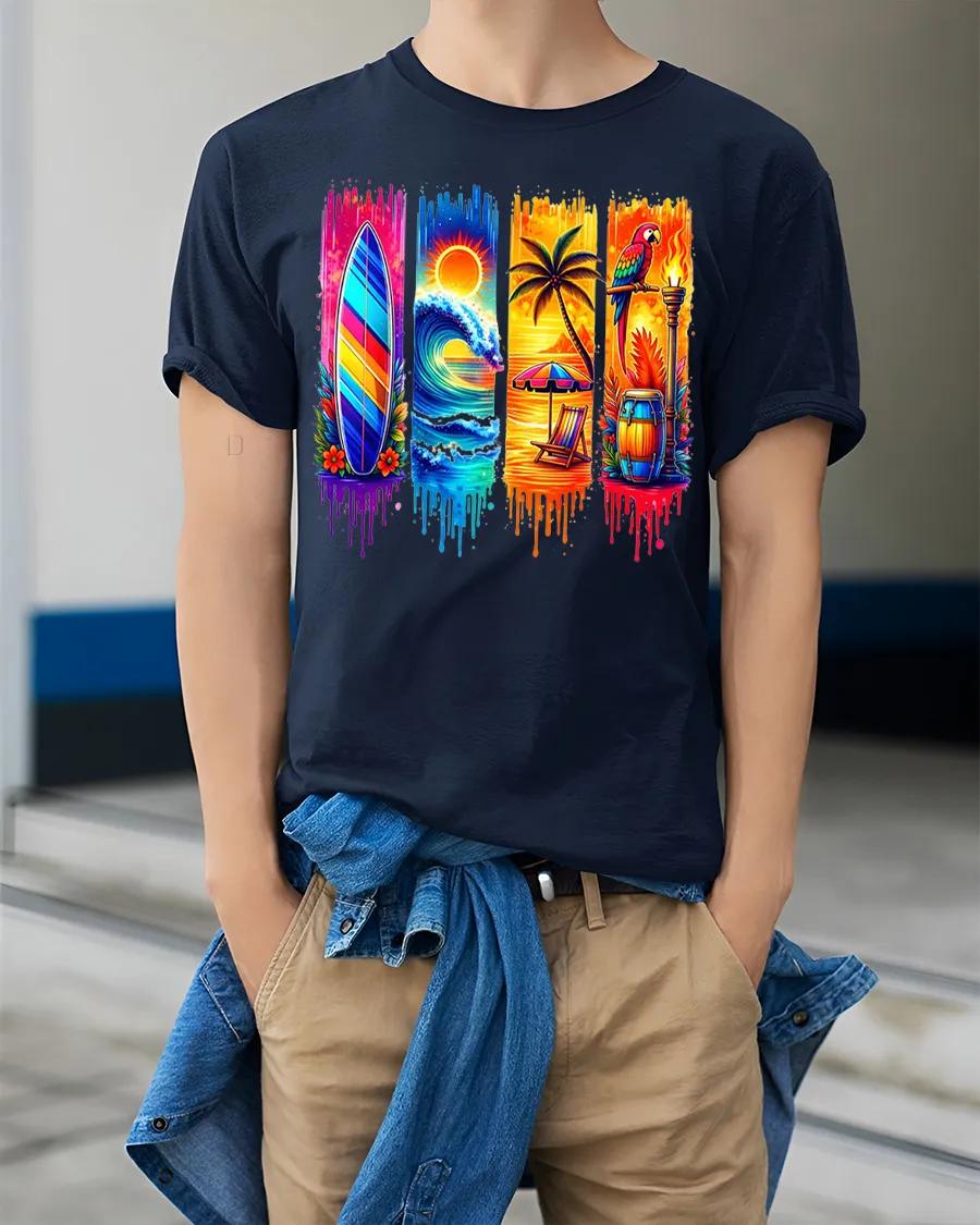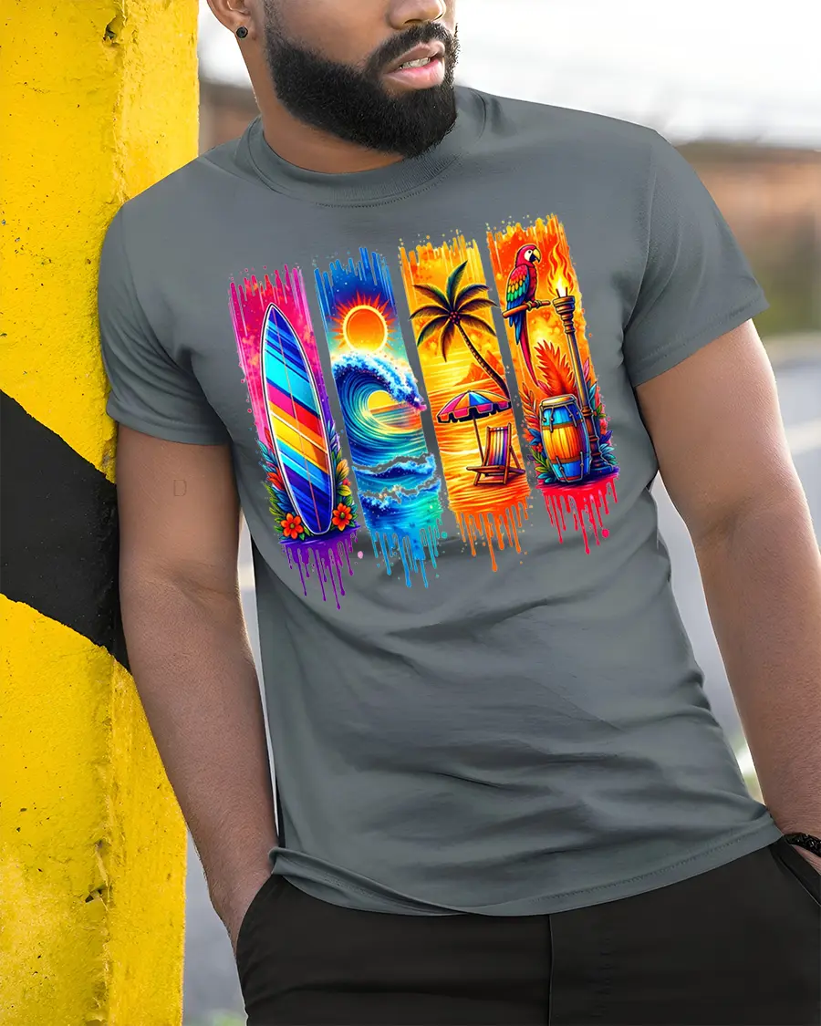 With its vibrant beach imagery and uplifting summer mood, this graphic tee delivers a joyful and energetic look that brings the spirit of tropical paradise into everyday style.